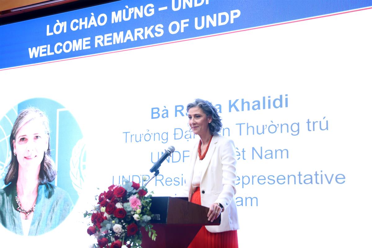 Bà Ramla Khalidi, Trưởng Đại diện thường trú UNDP tại Việt Nam phát biểu tại Diễn đàn