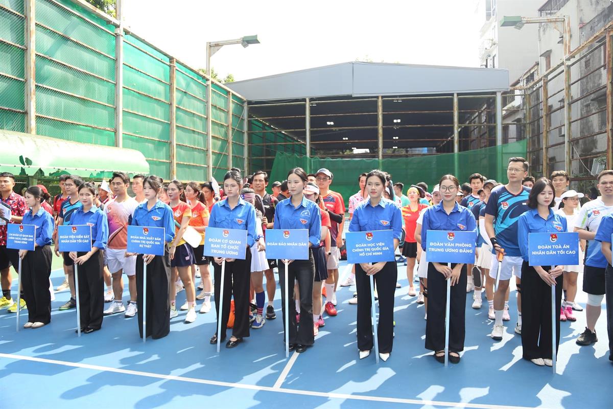 Dự chương trình có đồng chí Nguyễn Thị Hoàng Vân, Phó Bí thư Đảng uỷ các cơ quan Đảng Trung ương; đồng chí Trần Thị Ngọc Quỳnh, Bí thư Đoàn các cơ quan Đảng Trung ương; đồng chí Nguyễn Xuân Khôi, Phó Bí thư, Chủ nhiệm Uỷ ban Kiểm tra Đoàn các cơ quan Đảng Trung ương; đồng chí Đào Anh Tuấn, Bí thư Đoàn Học viện Chính trị quốc gia Hồ Chí Minh; và đại diện Bí thư Đoàn các cơ sở đoàn trực thuộc Đoàn các cơ quan Đảng Trung ương; cùng toàn thể vận động viên tham gia tranh tài ở 03 nội dung thi đấu: đôi nam, đôi nữ và đôi nam – nữ.
