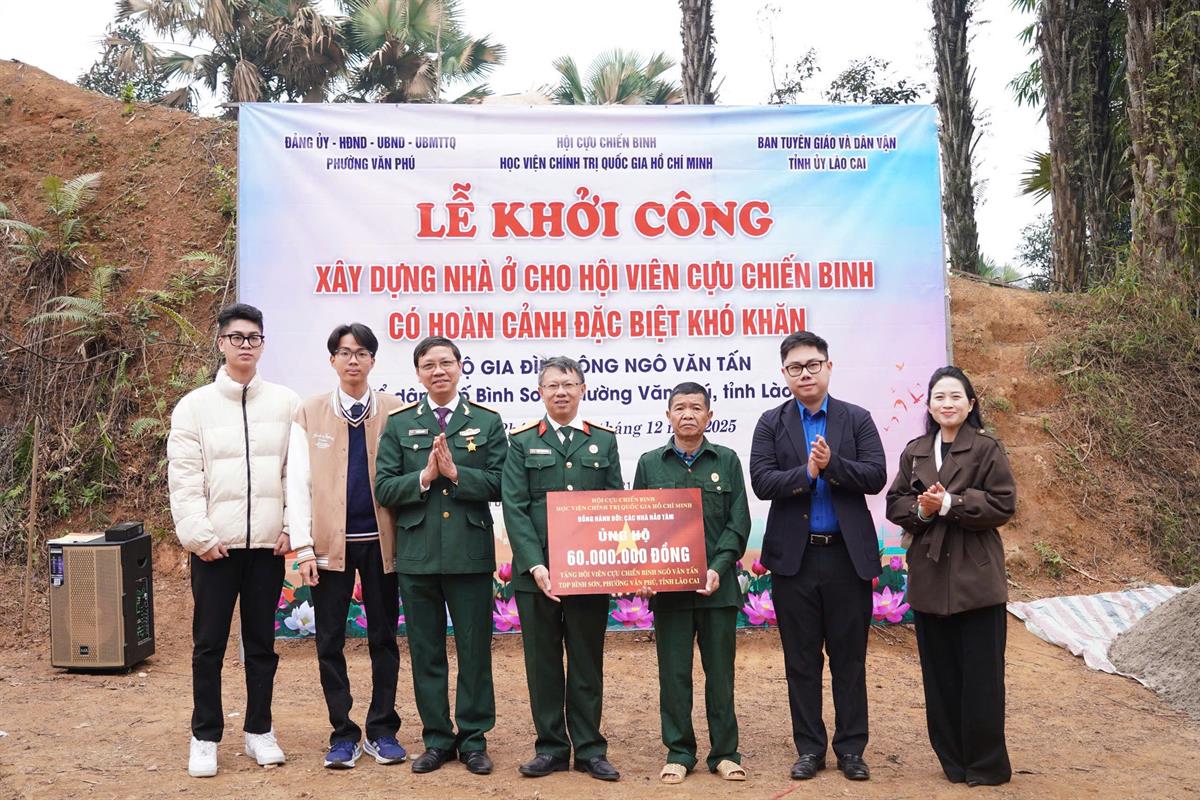 Hội Cựu Chiến binh Học viện Chính trị quốc gia Hồ Chí Minh trao kinh phí ủng hộ xây nhà tình nghĩa cho Hội viên Cựu Chiến binh có hoàn cảnh đặc biệt khó khăn tại tỉnh Lào Cai
