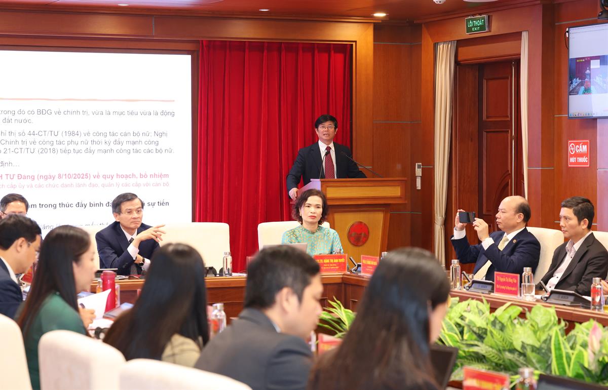 Phát biểu tại hội nghị, PGS,TS Đoàn Minh Huấn, Ủy viên Trung ương Đảng, Phó Giám đốc thường trực Học viện Chính trị quốc gia Hồ Chí Minh khẳng định: công tác cán bộ nữ là một bộ phận đặc biệt quan trọng trong tổng thể công tác cán bộ của Đảng và Nhà nước Việt Nam, nhất là trong bối cảnh đất nước bước vào giai đoạn phát triển mới với khát vọng hùng cường, thịnh vượng.