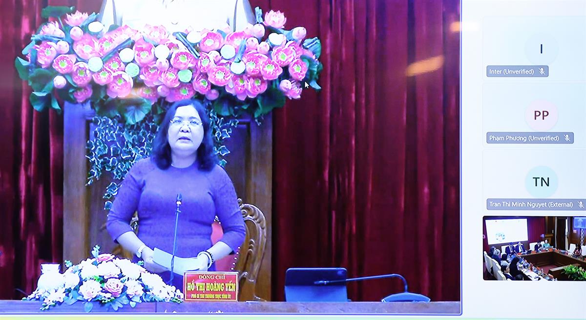 Đồng chí Hồ Thị Hoàng Yến, Phó Bí thư Tỉnh ủy Vĩnh Long phát biểu tại hội nghị