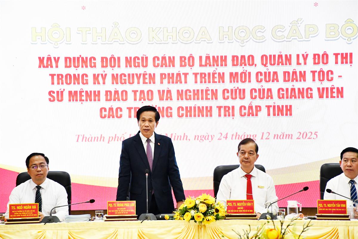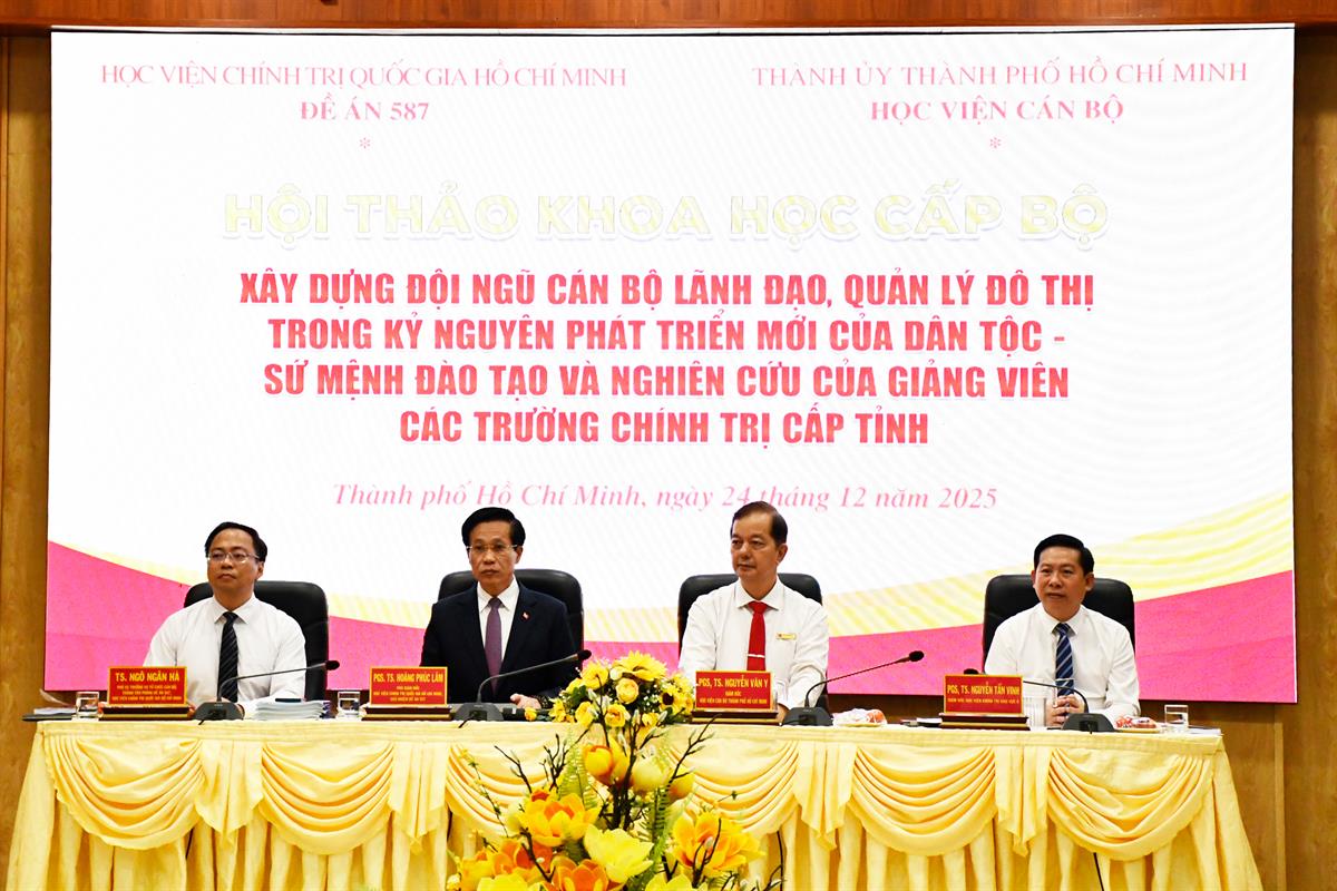 Phát biểu đề dẫn Hội thảo, PGS,TS Nguyễn Văn Y, Giám đốc Học viện Cán bộ Thành phố Hồ Chí Minh nhấn mạnh, xây dựng đội ngũ cán bộ lãnh đạo, quản lý đô thị trong giai đoạn hiện nay là nhiệm vụ chiến lược lâu dài, đòi hỏi tư duy quản trị hiện đại, năng lực đổi mới sáng tạo, tinh thần dám nghĩ, dám làm, dám chịu trách nhiệm vì lợi ích chung. Do đó, các trường chính trị cấp tỉnh giữ vai trò đặc biệt quan trọng trong việc xây dựng, tổ chức, triển khai các chương trình đào tạo, bồi dưỡng cho đội ngũ cán bộ này.