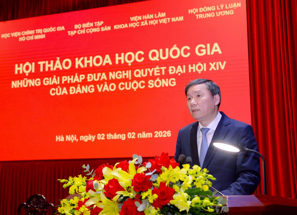 Nhấn mạnh bối cảnh, ý nghĩa hội thảo, GS,TS Nguyễn Xuân Thắng cho rằng hội thảo chính là biểu hiện sinh động, thiết thực nhất của tinh thần chỉ đạo của đồng chí Tổng Bí thư Tô Lâm đã khẳng định tại phiên bế mạc Đại hội XIV, thể hiện sự chuyển biến nhanh chóng, quyết liệt từ nhận thức lý luận sang hành động thực tiễn, từ nghị quyết của Đảng sang cuộc sống cụ thể của nhân dân. Và, việc bốn cơ quan lý luận lớn nhất phối hợp tổ chức hội thảo ngay sau Đại hội chỉ vài ngày đã gửi đi thông điệp mạnh mẽ: các cơ quan này không chỉ dừng lại ở nghiên cứu, lý luận mà còn chủ động, tích cực tham gia vào quá trình chuyển hóa nghị quyết thành hành động cụ thể, góp phần thực hiện thắng lợi các mục tiêu chiến lược mà Đại hội đã đề ra, hướng tới hai mốc son lịch sử 100 năm của Đảng và dân tộc.