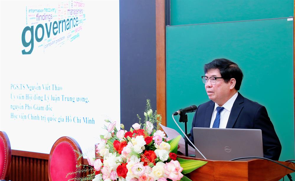 Phát biểu khai mạc và đề dẫn Hội thảo, PGS,TS Nguyễn Mạnh Hùng, Phó Giám đốc Học viện, Phó Chủ tịch Hội đồng Lý luận Trung ương khẳng định ý nghĩa và tầm quan trọng của Hội thảo, đặc biệt trong bối cảnh công nghệ số, trí tuệ nhân tạo (AI) đang phát triển mạnh mẽ, trở thành động lực cho quá trình phát triển ở các quốc gia. Đồng chí chỉ rõ: Hội thảo lần này được diễn ra trong bối cảnh Đảng Cộng sản Việt Nam đang chuẩn bị tiến hành Đại hội đại biểu toàn quốc lần thứ XIV, định hướng con đường phát triển của đất nước trong kỷ nguyên mới và Việt Nam đang tiến hành đồng thời nhiều giải pháp có tính đột phá để không chỉ tinh gọn bộ máy trong toàn hệ thống chính trị mà còn nâng cao hiệu năng, hiệu lực, hiệu quả của bộ máy nhà nước. Đây chính là cơ hội để các nhà khoa học, các nhà hoạch định chính sách trao đổi, thảo luận những vấn đề về lãnh đạo, quản trị, quản lý phát triển mới, có tác động sâu sắc đến thế giới, khu vực và Việt Nam.