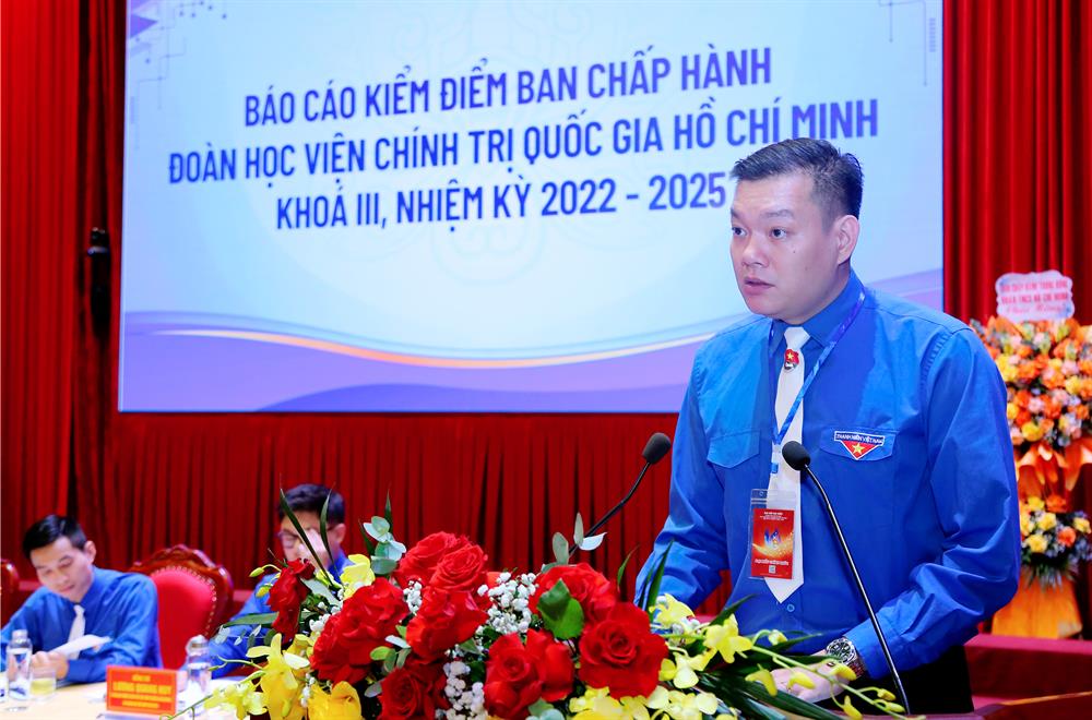 Thay mặt Ban Chấp hành Đoàn Thanh niên Học viện khoá III, nhiệm kỳ 2022-2025 báo cáo kiểm điểm tại Đại hội, đồng chí Phan Hoàng Quỳnh, Phó Bí thư Đoàn Thanh niên Học viện trân trọng cảm ơn sự quan tâm chỉ đạo, lãnh đạo thường xuyên, kịp thời của Đảng ủy, Ban Giám đốc Học viện; sự quan tâm của Trung ương Đoàn, Đoàn các cơ quan Đảng Trung ương (trước là Đoàn Khối các cơ quan Trung ương); sự phối hợp, hỗ trợ tích cực của các đơn vị trực thuộc Học viện và các tổ chức đoàn thể; sự dõi theo, đồng hành của các thế hệ cán bộ Đoàn Học viện qua các thời kỳ.