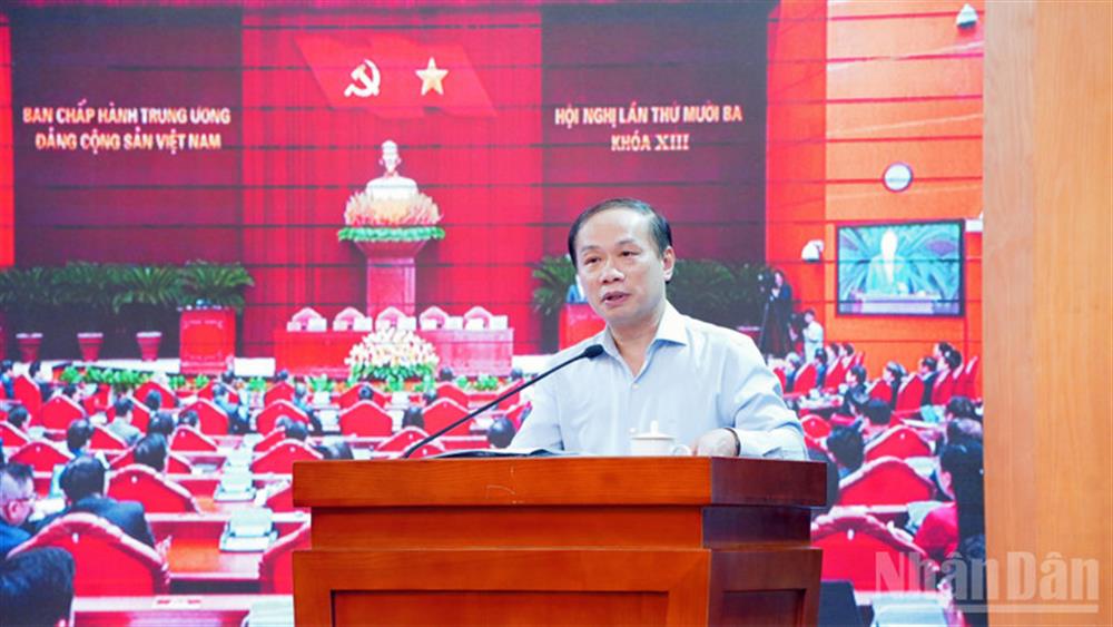 1. Phát biểu tại Hội nghị, đồng chí Phạm Tất Thắng, Ủy viên Ban Chấp hành Trung ương Đảng, Phó Trưởng Ban Tuyên giáo và Dân vận Trung ương thông báo nhanh kết quả Hội nghị lần thứ 13, Ban Chấp hành Trung ương Đảng khóa XIII.