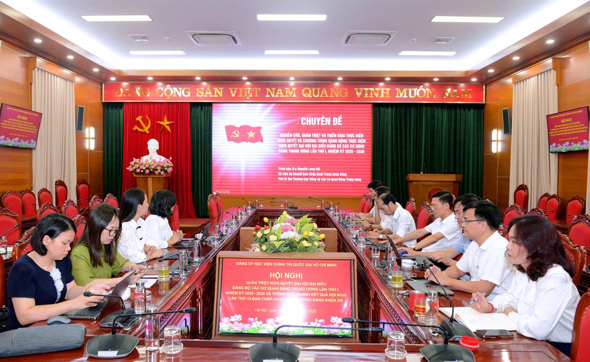 Đảng bộ Học viện Chính trị quốc gia Hồ Chí Minh kết nối trực tuyến với Hội nghị.