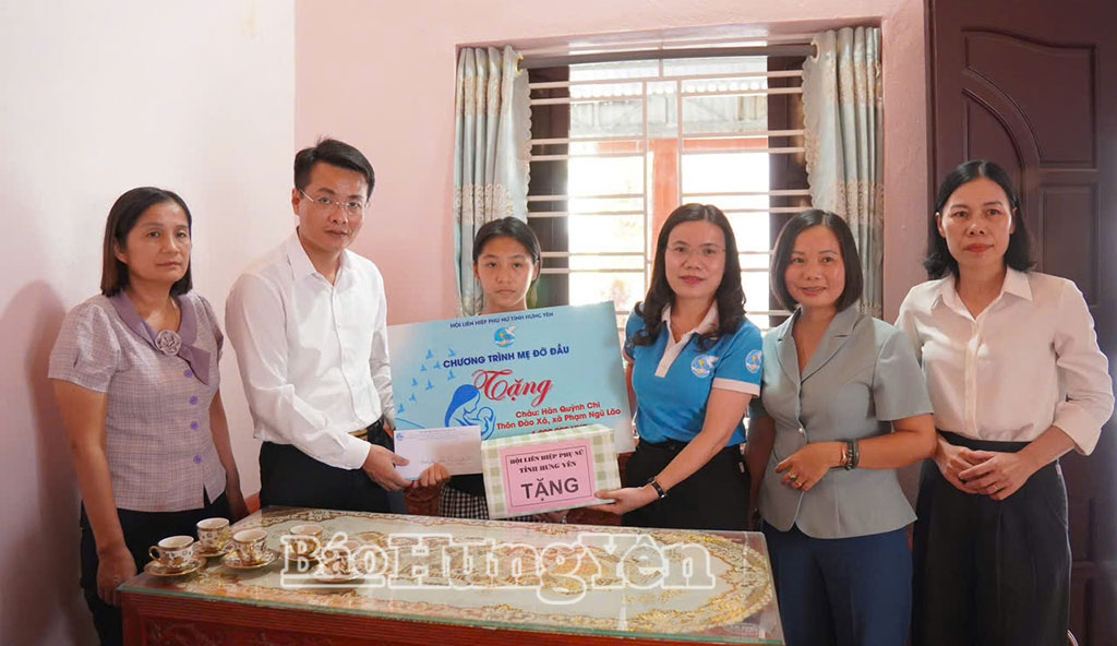 Lãnh đạo Hội LHPN tỉnh trao quà cho cháu Hàn Quỳnh Chi, xã Phạm Ngũ Lão.