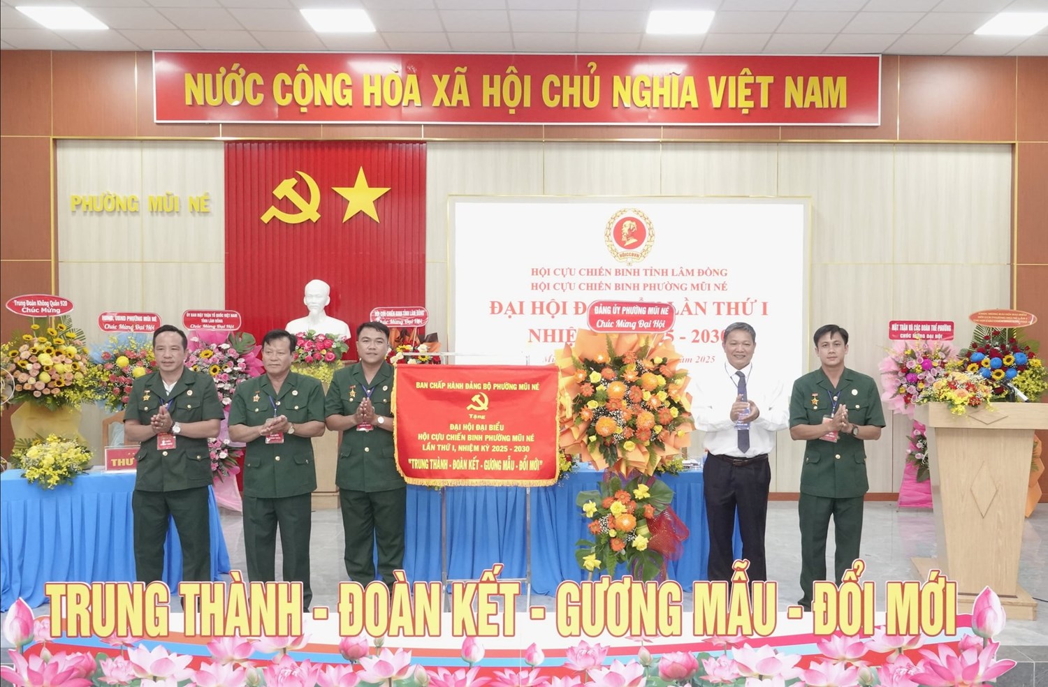 | Đại biểu chụp hình lưu niệm cùng Ban chấp hành Đại hội Hội CCB phường Mũi Né, nhiệm kỳ 2025 - 2030 |