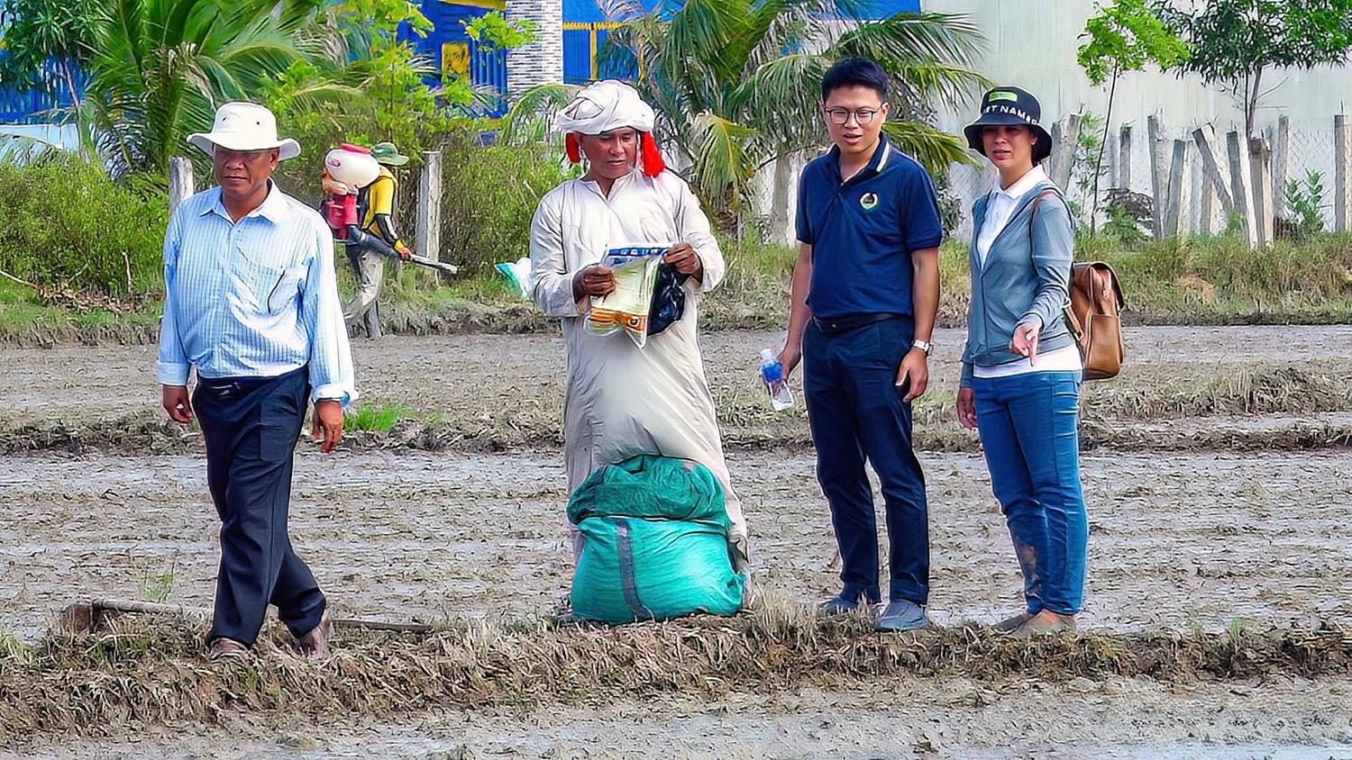 | Đồng bào Chăm ở xã Bắc Bình tham gia mô hình “Cánh đồng không dấu chân”. Ảnh: Ngọc Lân |