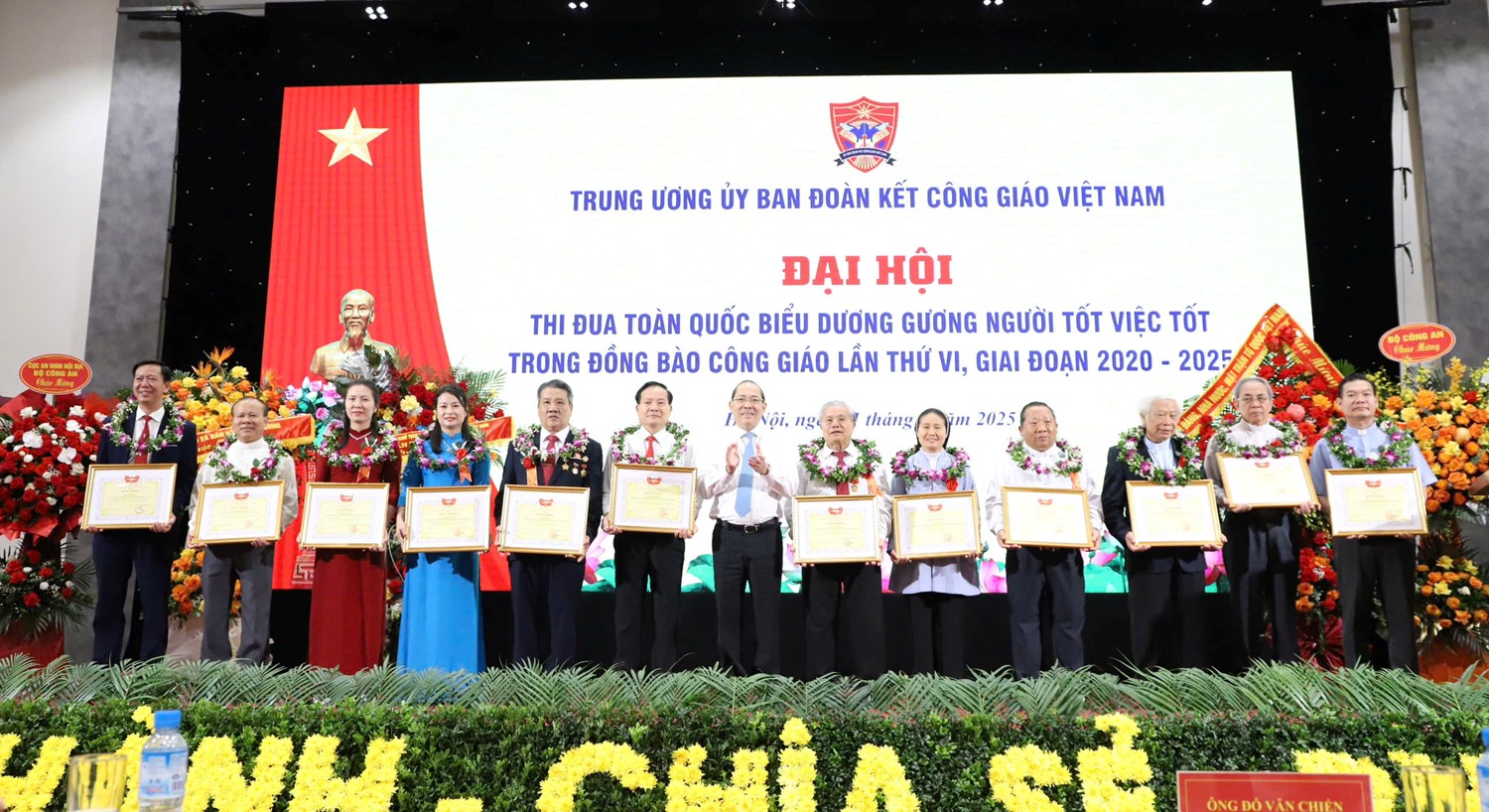 Tại Đại hội, Chủ tịch Ủy ban Trung ương MTTQ Việt Nam Đỗ Văn Chiến và Phó Chủ tịch Ủy ban Trung ương MTTQ Việt Nam Hoàng Công Thủy đã trao tặng Bằng khen của UBTƯ MTTQ Việt Nam cho các tập thể, cá nhân ghi nhận và biểu dương những thành tích xuất sắc, tiêu biểu trong triển khai thực hiện các phong trào thi đua yêu nước trong đồng bào Công giáo giai đoạn 2020 - 2025.