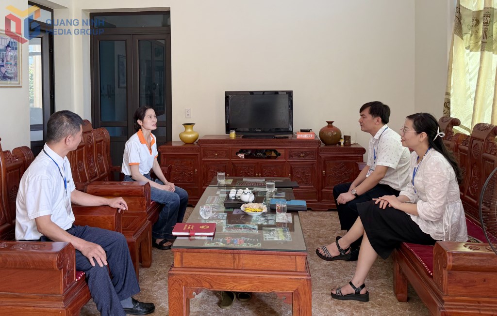| Cán bộ Ủy ban MTTQ Việt Nam phường Mạo Khê trò chuyện, trao đổi công việc với cán bộ làm công tác Mặt trận khu Xuân Viên 4, phường Mạo Khê |