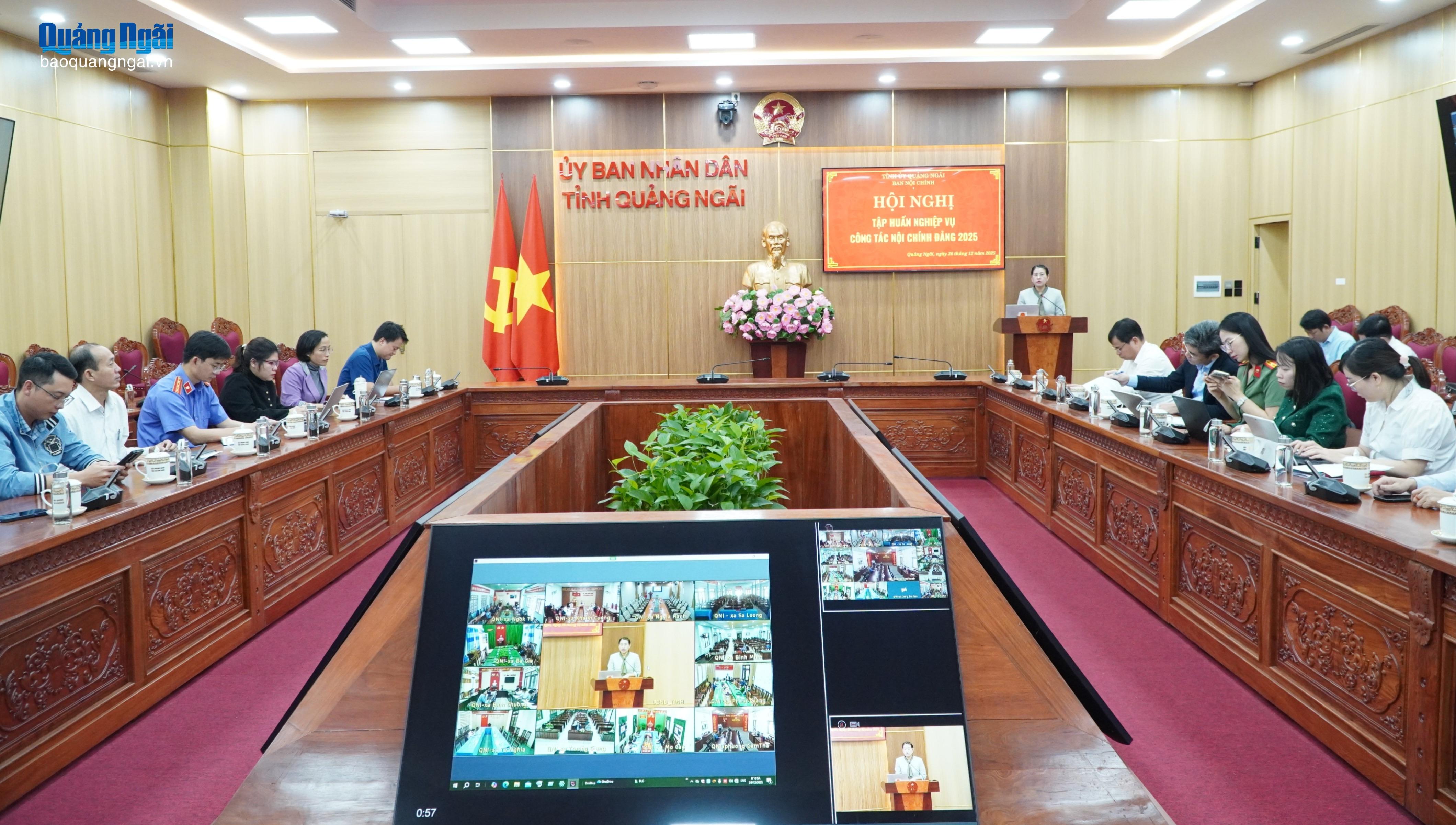 Ngày 26/12, Ban Nội chính Tỉnh ủy tổ chức Hội nghị tập huấn nghiệp vụ công tác Nội chính Đảng năm 2025 theo hình thức trực tiếp kết hợp trực tuyến, từ điểm cầu chính của tỉnh kết nối đến 96 xã, phường, đặc khu.