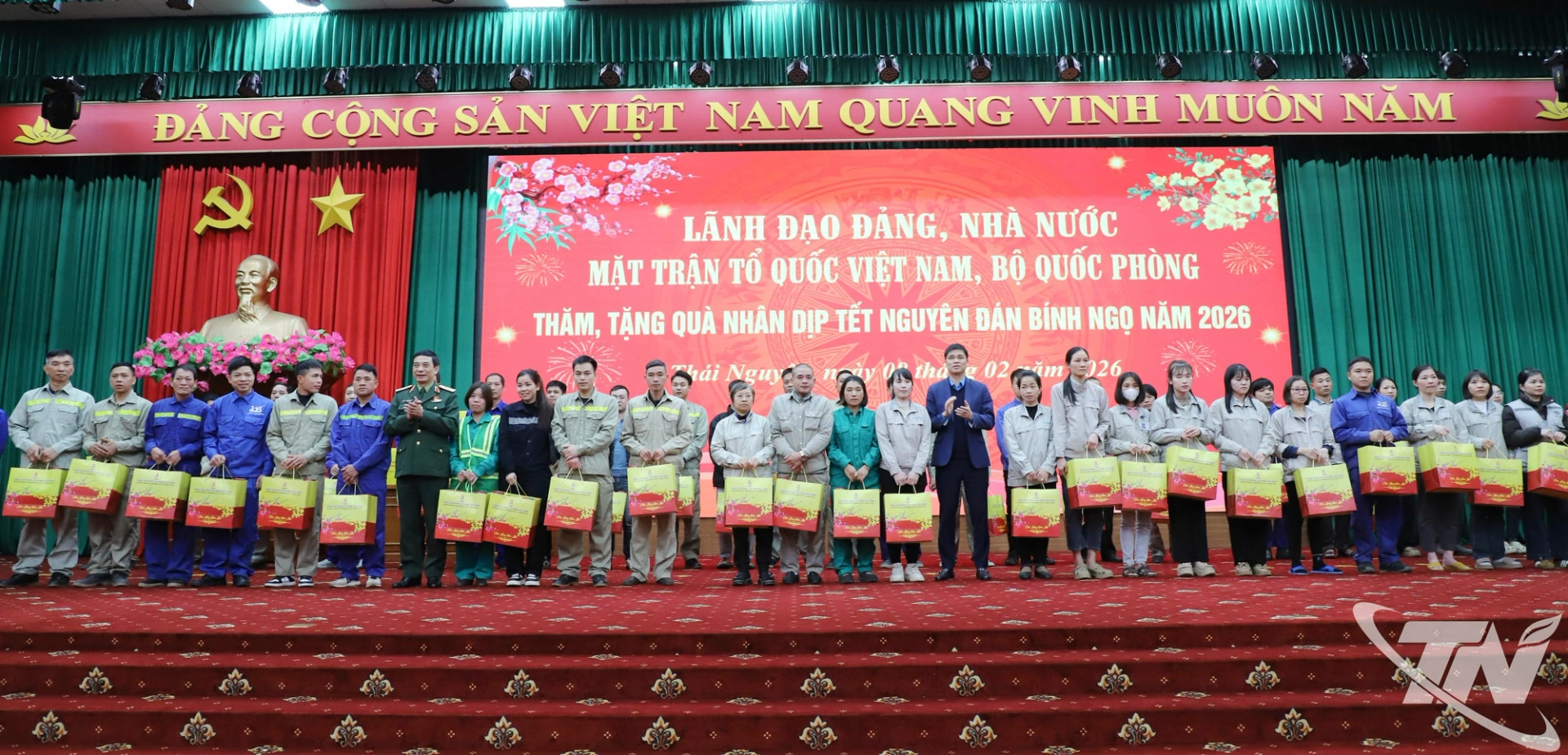 Sáng 8-2, Đoàn công tác Trung ương do Đại tướng Phan Văn Giang, Ủy viên Bộ Chính trị, Phó Bí thư Quân ủy Trung ương, Bộ trưởng Bộ Quốc phòng, làm Trưởng đoàn đến thăm, chúc Tết và trao quà tặng các đối tượng chính sách, hộ nghèo, hộ cận nghèo và công nhân lao động có hoàn cảnh khó khăn trên địa bàn tỉnh Thái Nguyên nhân dịp Tết Nguyên đán Bính Ngọ năm 2026.