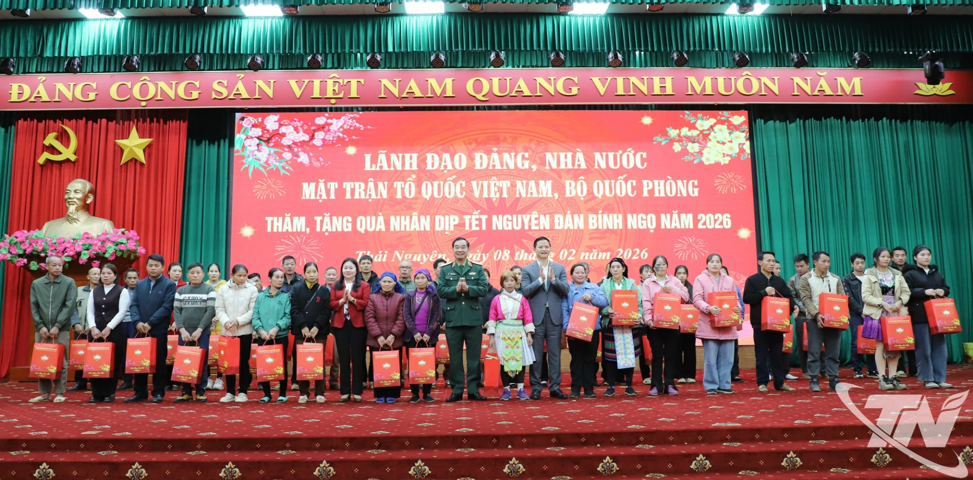 Dịp này, Đoàn công tác Trung ương trao 200 suất quà tặng các gia đình chính sách, người có công; 300 suất quà tặng hộ nghèo, hộ cận nghèo và 300 suất quà tặng công nhân lao động có hoàn cảnh khó khăn, mỗi suất trị giá 2,3 triệu đồng cùng quà Tết của Bộ Quốc phòng. Tại Chương trình, 225 người được trực tiếp nhận quà từ lãnh đạo Trung ương, Quân khu 1 và tỉnh Thái Nguyên.