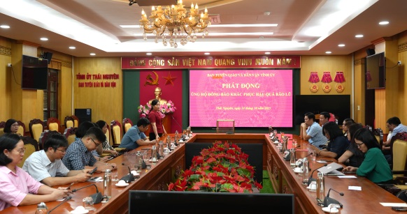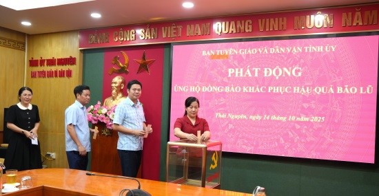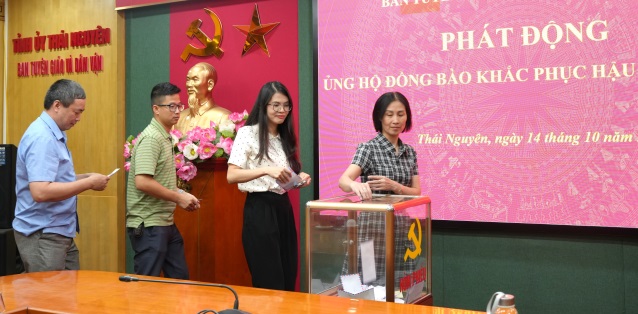 Hưởng ứng Lời kêu gọi của Ủy ban MTTQ Việt Nam tỉnh Thái Nguyên, chiều 14/10, Ban Tuyên giáo và Dân vận Tỉnh ủy tổ chức phát động ủng hộ đồng bào các địa phương bị thiệt hại do cơn bão số 11 gây ra.