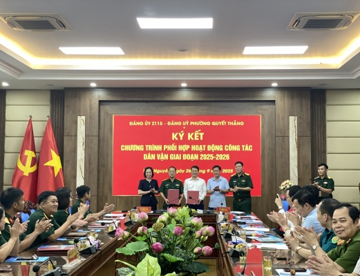 Ngày 26/9, tại Nhà máy Z115, Đảng ủy phường Quyết Thắng (tỉnh Thái Nguyên) và Đảng ủy Z115 đã tổ chức Hội nghị ký kết Chương trình phối hợp hoạt động công tác Dân vận giai đoạn 2025 - 2026.