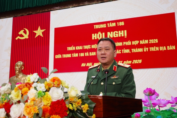 Ngày 07/01/2026, tại Hà Nội, Trung tâm 186 thuộc Bộ Tư lệnh 86 tổ chức Hội nghị triển khai chương trình phối hợp công tác giữa Trung tâm 186 với Ban Chỉ đạo 35 các tỉnh ủy, thành ủy khu vực phía Bắc.