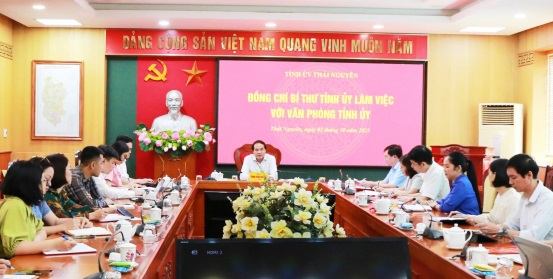 Tại buổi làm việc, lãnh đạo Văn phòng Tỉnh ủy kiến nghị Thường trực Tỉnh ủy tiếp tục quan tâm định hướng nhiệm vụ, tạo điều kiện bổ sung, luân chuyển cán bộ có năng lực từ các cơ quan, địa phương về công tác tại Văn phòng Tỉnh ủy, nhằm nâng cao chất lượng tham mưu; xem xét chủ trương xây dựng Kho lưu trữ Tỉnh ủy Thái Nguyên đạt chuẩn, đáp ứng yêu cầu quản lý, bảo quản, khai thác tài liệu trong giai đoạn mới; đồng thời hỗ trợ về cơ sở vật chất, trang thiết bị làm việc để đáp ứng khối lượng công việc ngày càng lớn sau hợp nhất…