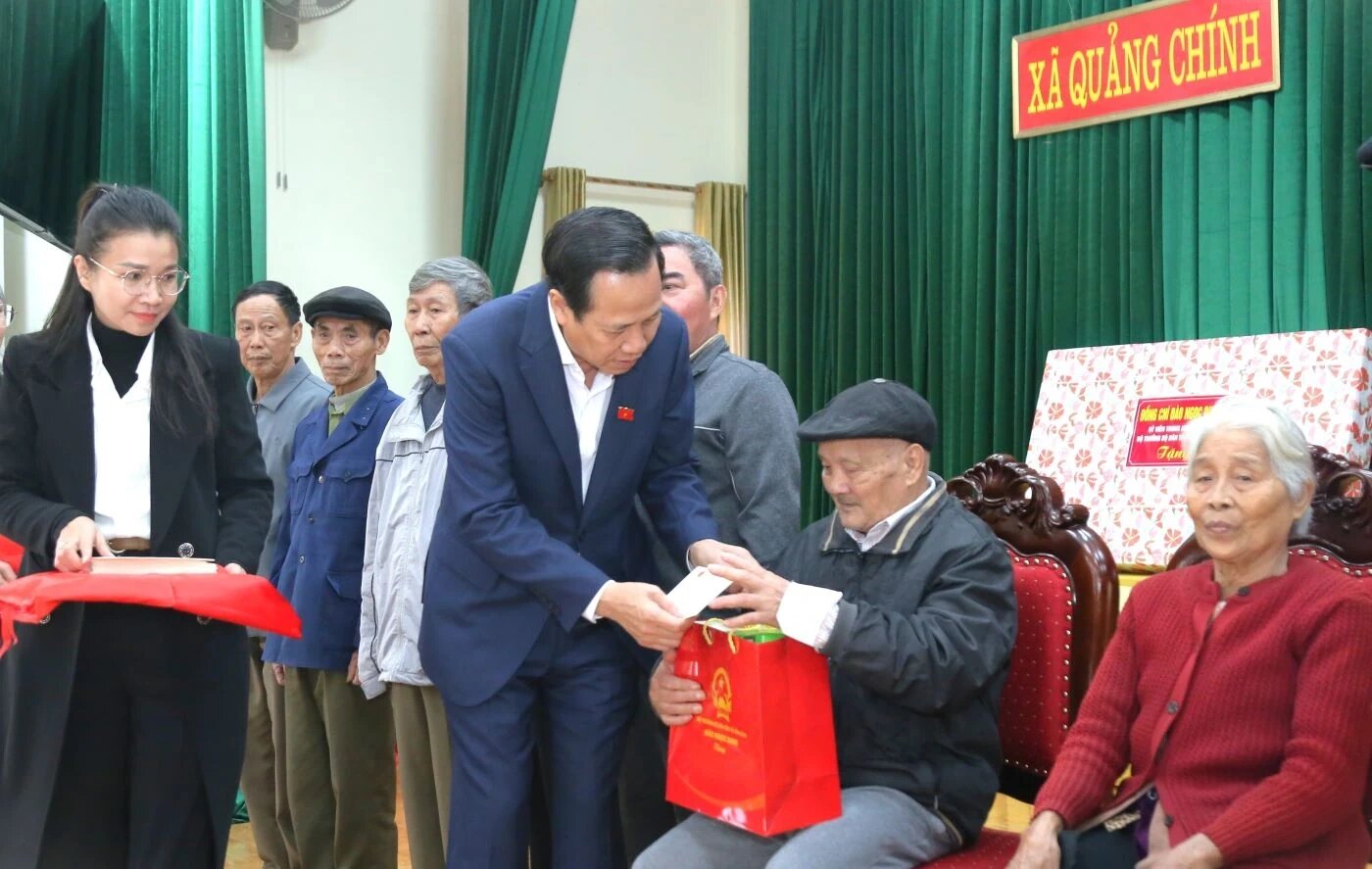 Nhân dịp này, Bộ trưởng Bộ Dân tộc và Tôn giáo Đào Ngọc Dung; Phó Bí thư Thường trực Tỉnh ủy Nguyễn Hồng Phong và các ĐBQH đã trao nhiều phần quà ý nghĩa cho các hộ nghèo, gia đình có công với cách mạng trên địa bàn xã Quảng Chính và chính quyền xã Quảng Chính.