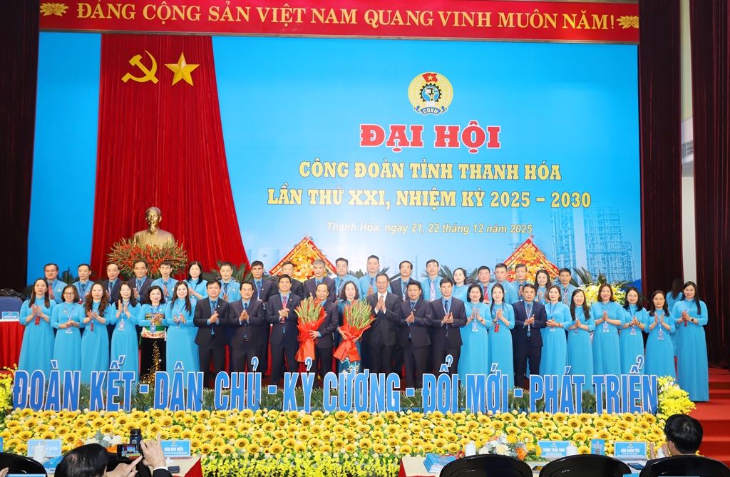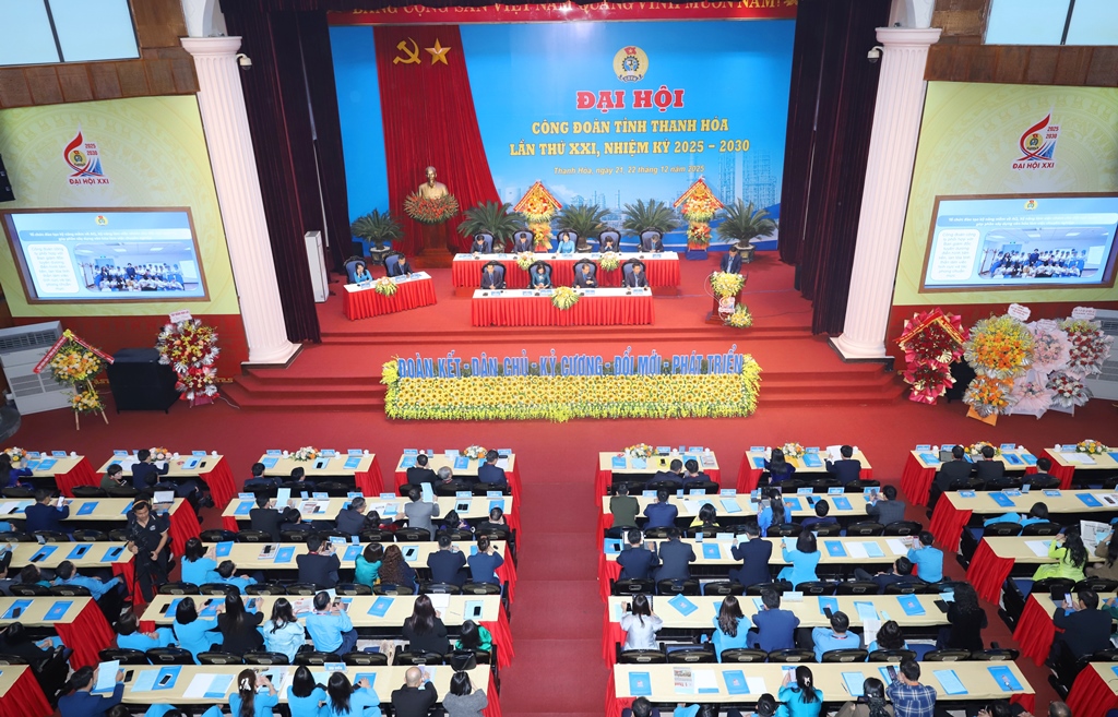 Đại hội Công đoàn tỉnh Thanh Hóa lần thứ XXI với phương châm: "Đoàn kết - Dân chủ - Kỷ cương - Đổi mới - Phát triển" đã xác định rõ mục tiêu xuyên suốt của nhiệm kỳ 2025-2030 là xây dựng tổ chức Công đoàn vững mạnh toàn diện, là điểm tựa tin cậy, chăm lo, đại diện bảo vệ quyền, lợi ích hợp pháp, chính đáng của đoàn viên, NLĐ; đồng hành xây dựng đội ngũ công nhân, lao động có bản lĩnh chính trị vững vàng, trình độ, tay nghề cao, tác phong công nghiệp, chủ động hội nhập quốc tế; khơi dậy khát vọng cống hiến, tiên phong đổi mới sáng tạo, chuyển đổi số, chuyển đổi xanh, vì hạnh phúc của đoàn viên, NLĐ và sự phát triển bền vững của DN góp phần hiện thực hóa mục tiêu Thanh Hóa giàu đẹp, văn minh, hạnh phúc, kiểu mẫu.