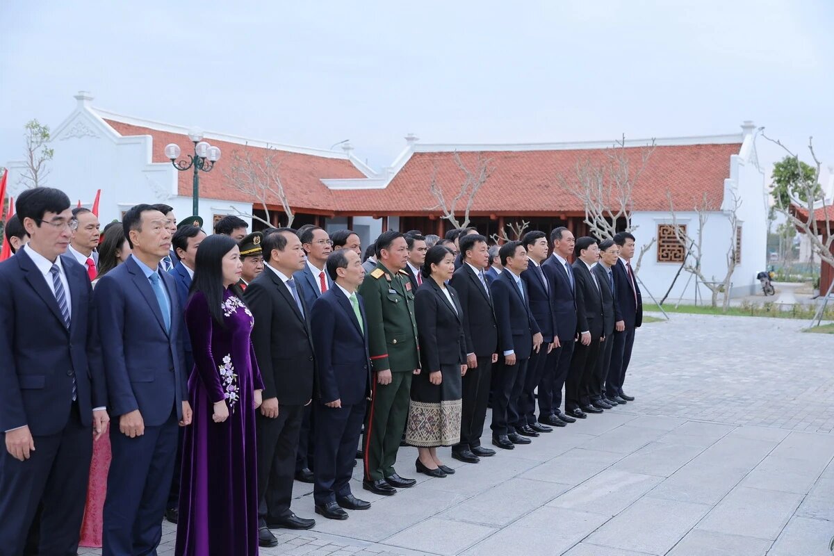 Đến dâng hương, dâng hoa tại Khu văn hóa tưởng niệm Chủ tịch Hồ Chí Minh, đoàn đại biểu hai tỉnh đã dành phút mặc niệm tưởng nhớ vị Anh hùng dân tộc, danh nhân văn hóa thế giới, lãnh tụ vĩ đại của dân tộc Việt Nam, người đã cùng Chủ tịch Cay xỏn Phôn vi hẳn đặt nền móng cho mối quan hệ tốt đẹp giữa hai Đảng, hai nhà nước và hai dân tộc Việt Nam - Lào.