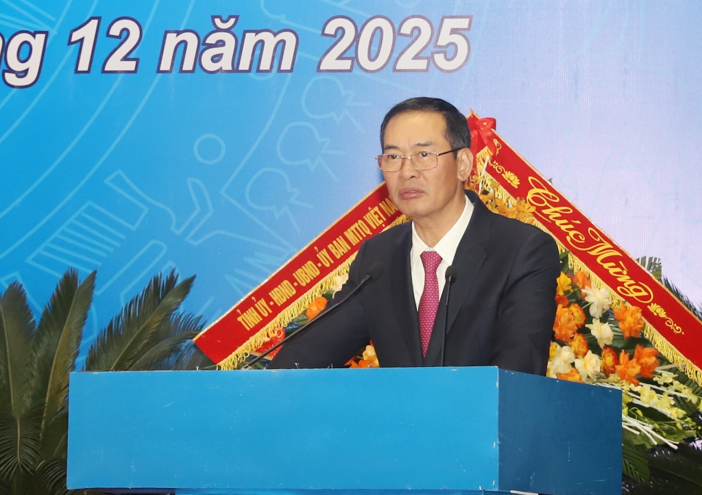 | Đồng chí Trịnh Tuấn Sinh, Phó Bí thư Tỉnh ủy, Chủ tịch Ủy ban MTTQ tỉnh phát biểu chỉ đạo tại Đại hội. |