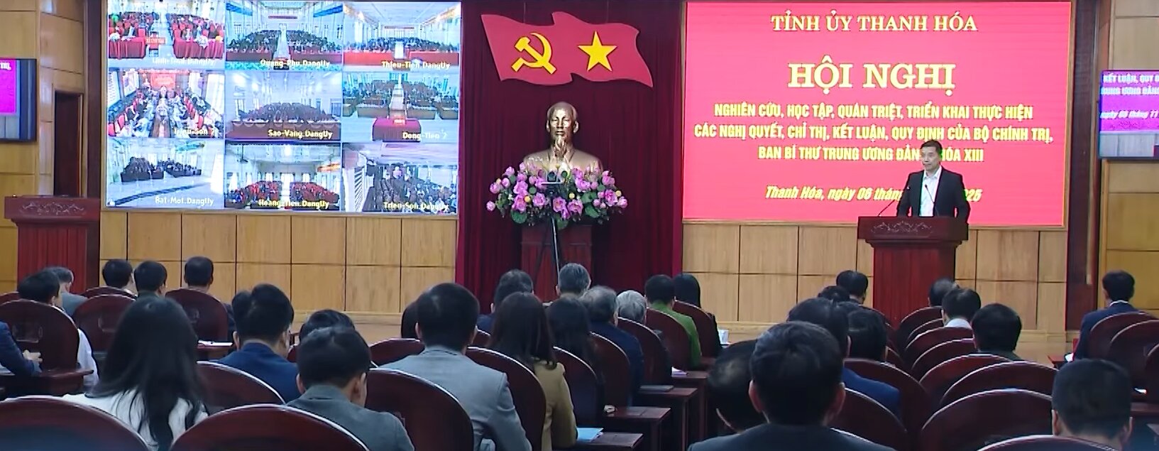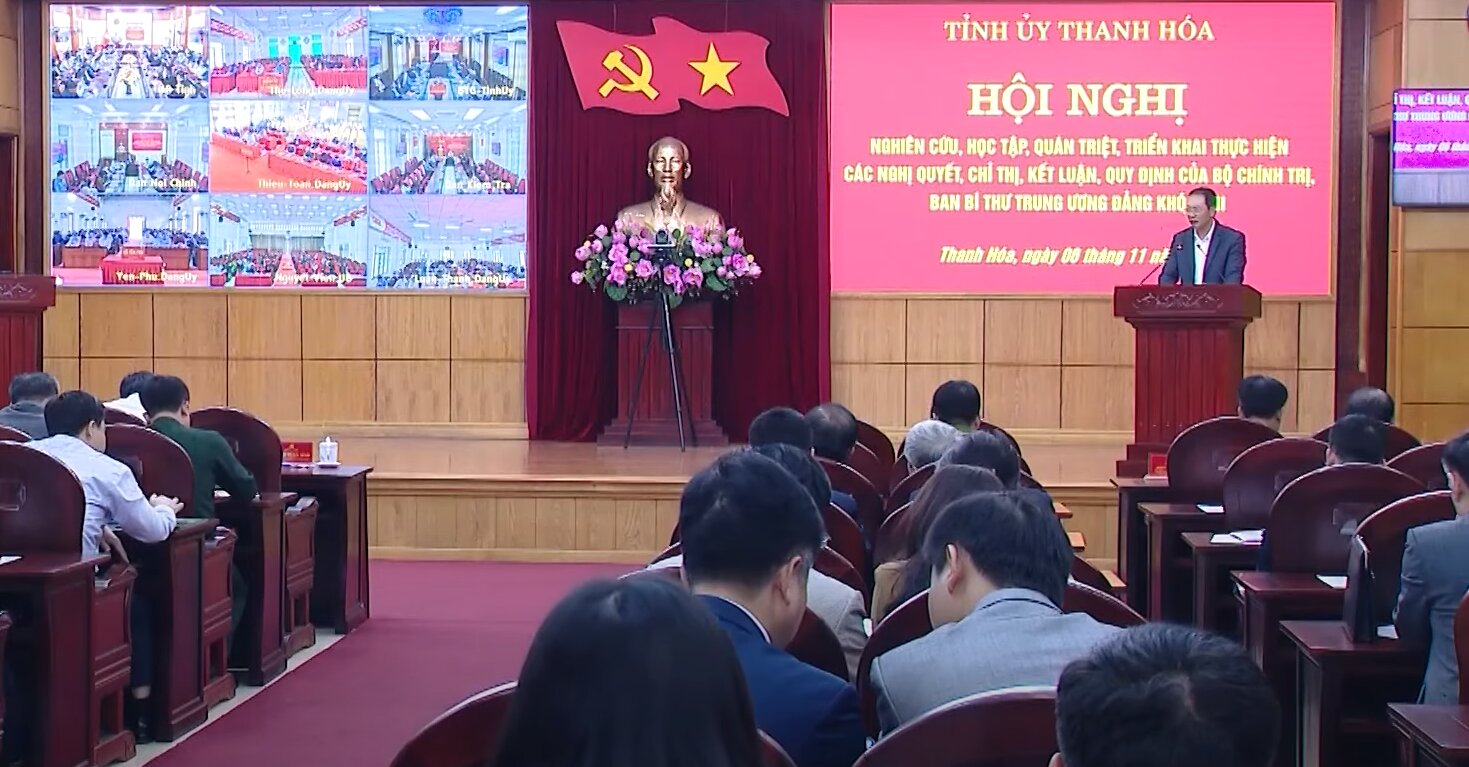 (Thanhhoa.dcs.vn): Chiều ngày 06/11/2025, Ban Thường vụ Tỉnh ủy đã tổ chức Hội nghị nghiên cứu, học tập, quán triệt, triển khai thực hiện các nghị quyết, chỉ thị, kết luận, quy định mới của Bộ Chính trị, Ban Bí thư Trung ương Đảng khóa 13 bằng hình thức trực tiếp tại Hội trường Tỉnh ủy và trực tuyến đến điểm cầu các ban, sở, ngành, cơ quan, đơn vị cấp tỉnh và các xã, phường trong tỉnh. Đồng chí Nguyễn Hồng Phong, Phó Bí thư Thường trực Tỉnh ủy và đồng chí Trịnh Tuấn Sinh, Phó Bí thư Tỉnh ủy chủ trì hội nghị tại Hội trường Tỉnh ủy. Ban Biên tập Cổng thông tin điện tử Tỉnh ủy trân trọng giới thiệu bài phát biểu kết luận hội nghị của đồng chí Phó Bí thư Tỉnh ủy.