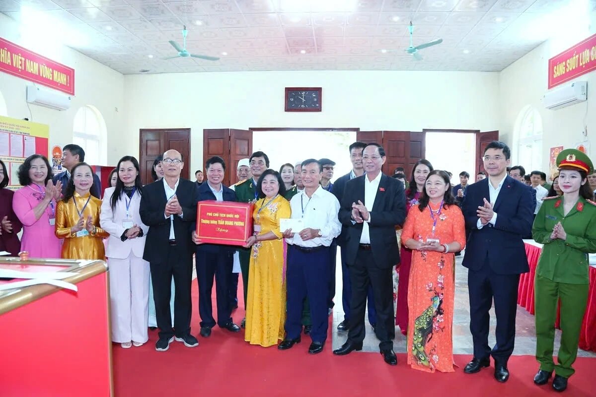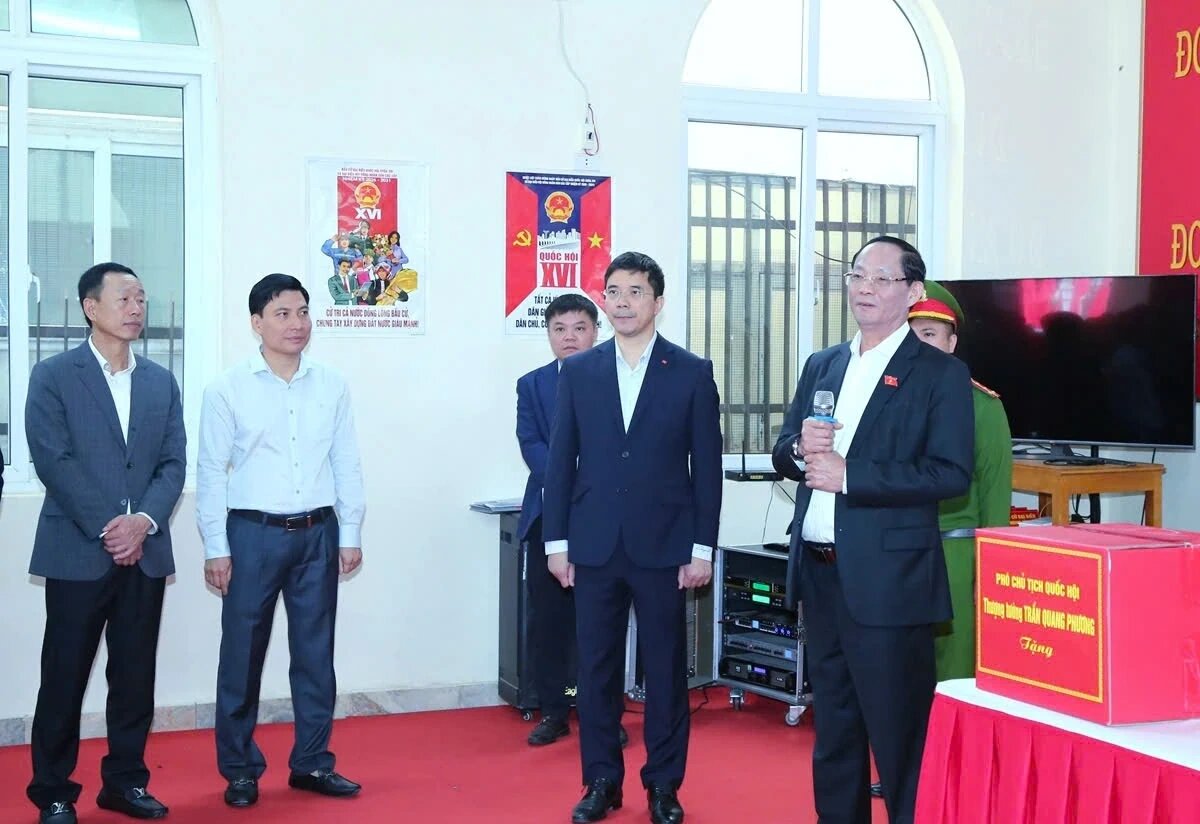 Phó Chủ tịch Quốc hội Trần Quang Phương cùng các thành viên đoàn công tác đã kiểm tra thực tế việc bố trí cơ sở vật chất, khu vực niêm yết thông tin, thùng phiếu và các điều kiện phục vụ cử tri tại Khu vực bỏ phiếu số 58, đặt tại nhà văn hóa phố Bình Minh, phường Hạc Thành. Đồng thời, kiểm tra cách xử lý một số tình huống giả định có thể phát sinh trong thực tế vận hành quy trình bỏ phiếu bầu cử.