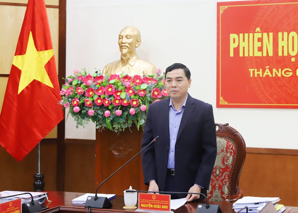 | Chủ tịch UBND tỉnh Nguyễn Hoài Anh phát biểu kết luận các nội dung tại phiên họp. |