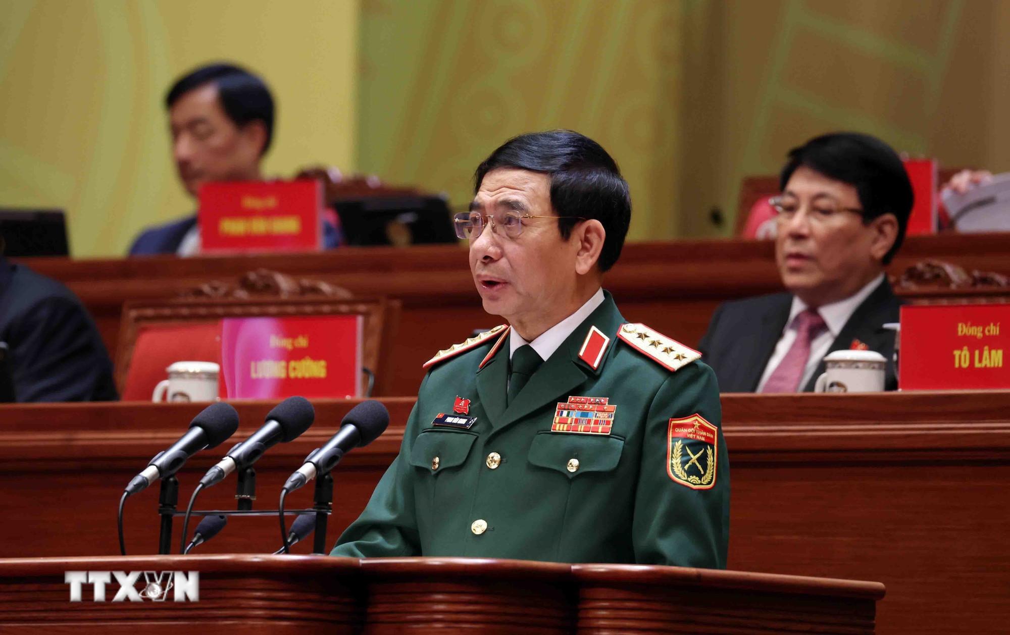 Đại tướng Phan Văn Giang, Ủy viên Bộ Chính trị, Phó Bí thư Quân ủy Trung ương, Bộ trưởng Bộ Quốc phòng, tham luận về vấn đề “Xây dựng Quân đội nhân dân cách mạng, chính quy, tinh nhuệ, hiện đại, làm nòng cốt xây dựng nền quốc phòng vững mạnh, hiện đại, gắn với nền an ninh nhân dân và thế trận lòng dân vững chắc” .