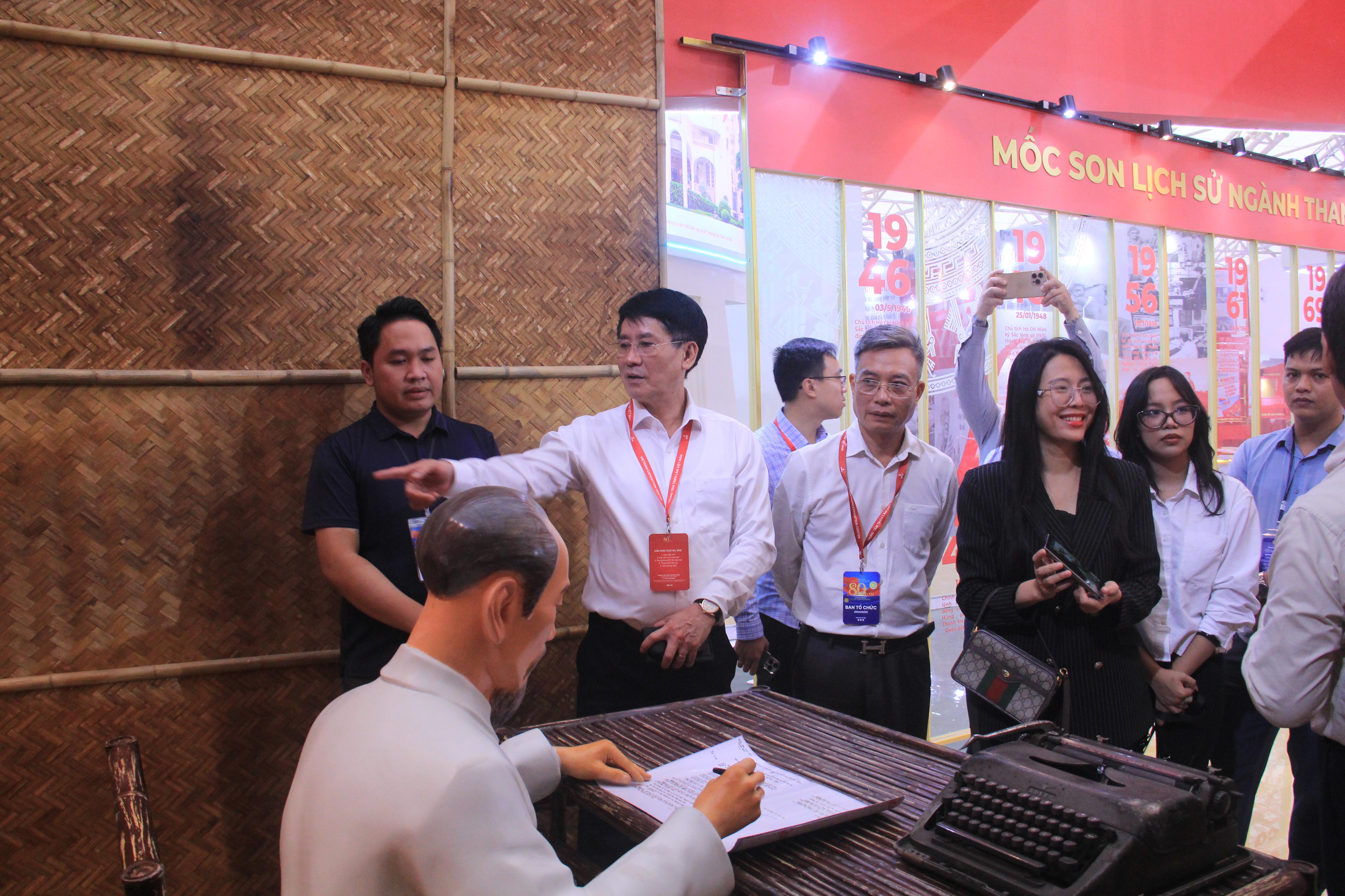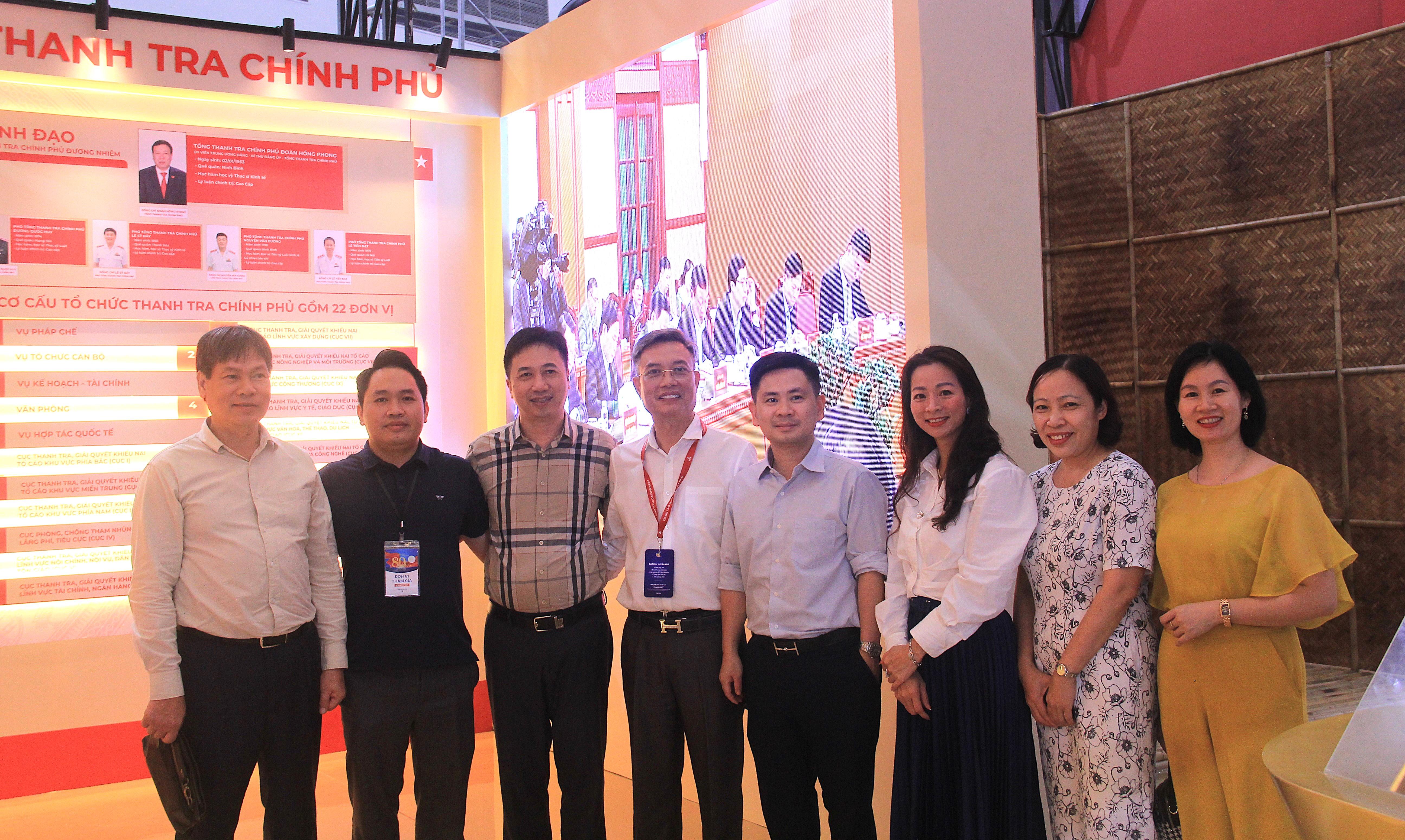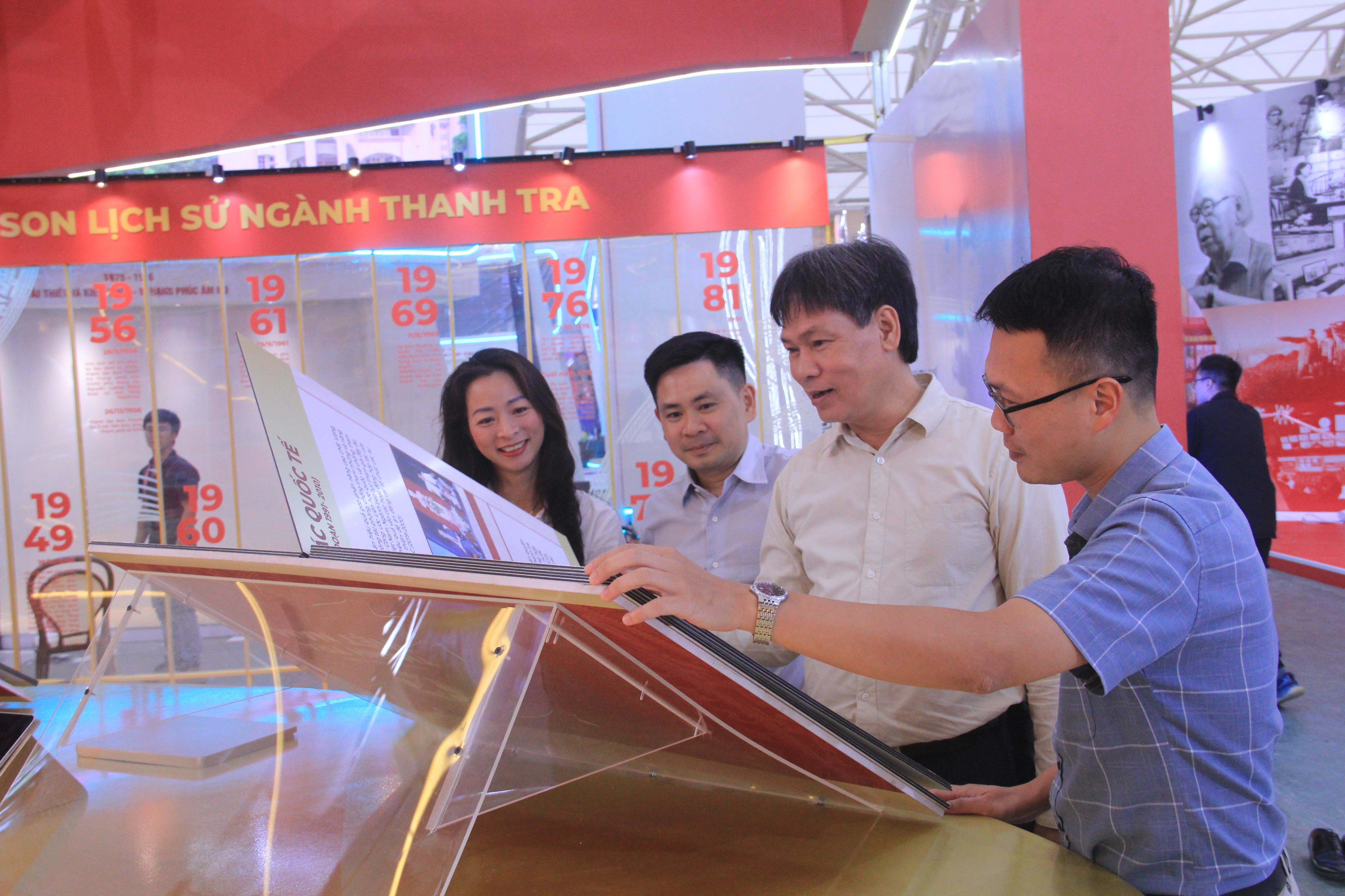 Tại gian trưng bày của ngành Thanh tra, Phó Tổng Thanh tra Chính phủ Lê Sỹ Bảy cùng các thành viên Ban Chỉ đạo đã nghe đơn vị thường trực (Báo Thanh tra) báo cáo và kiểm tra thực tế các hạng mục trưng bày trong khu vực gian triển lãm của ngành Thanh tra.