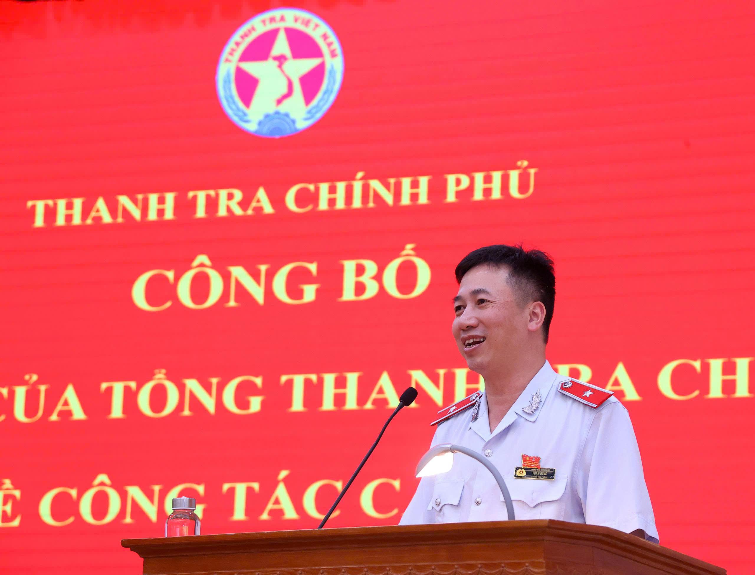 Phát biểu nhận nhiệm vụ, thay mặt các đồng chí vừa nhận quyết định điều động, bổ nhiệm, đồng chí Phạm Hùng, tân Cục trưởng Cục I, Thanh tra Chính phủ bày tỏ lòng biết ơn, sự trân trọng đối với Ban Thường vụ Đảng uỷ TTCP, đặc biệt là cá nhân đồng chí Bí thư Đảng uỷ, Tổng TTCP Đoàn Hồng Phong, cảm ơn các đơn vị nơi các đồng chí từng công tác đã đào tạo, vun đắp, bồi dưỡng để các đồng chí được trưởng thành như ngày hôm nay