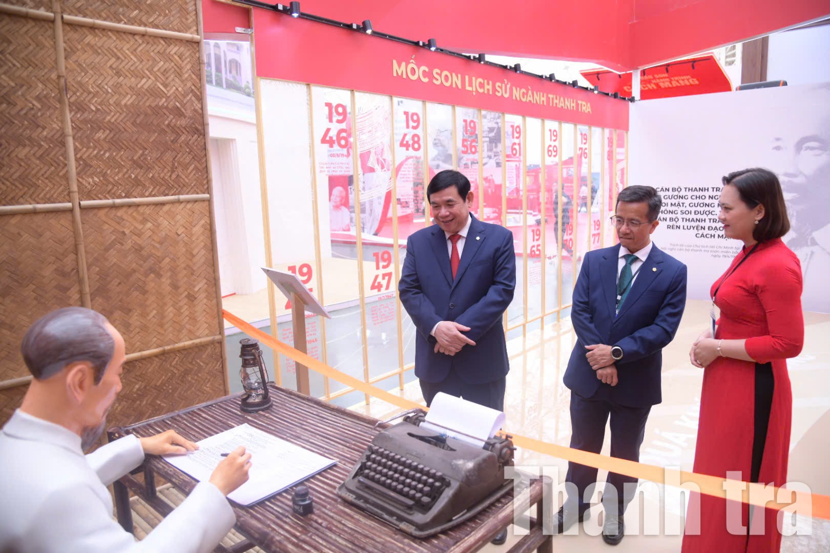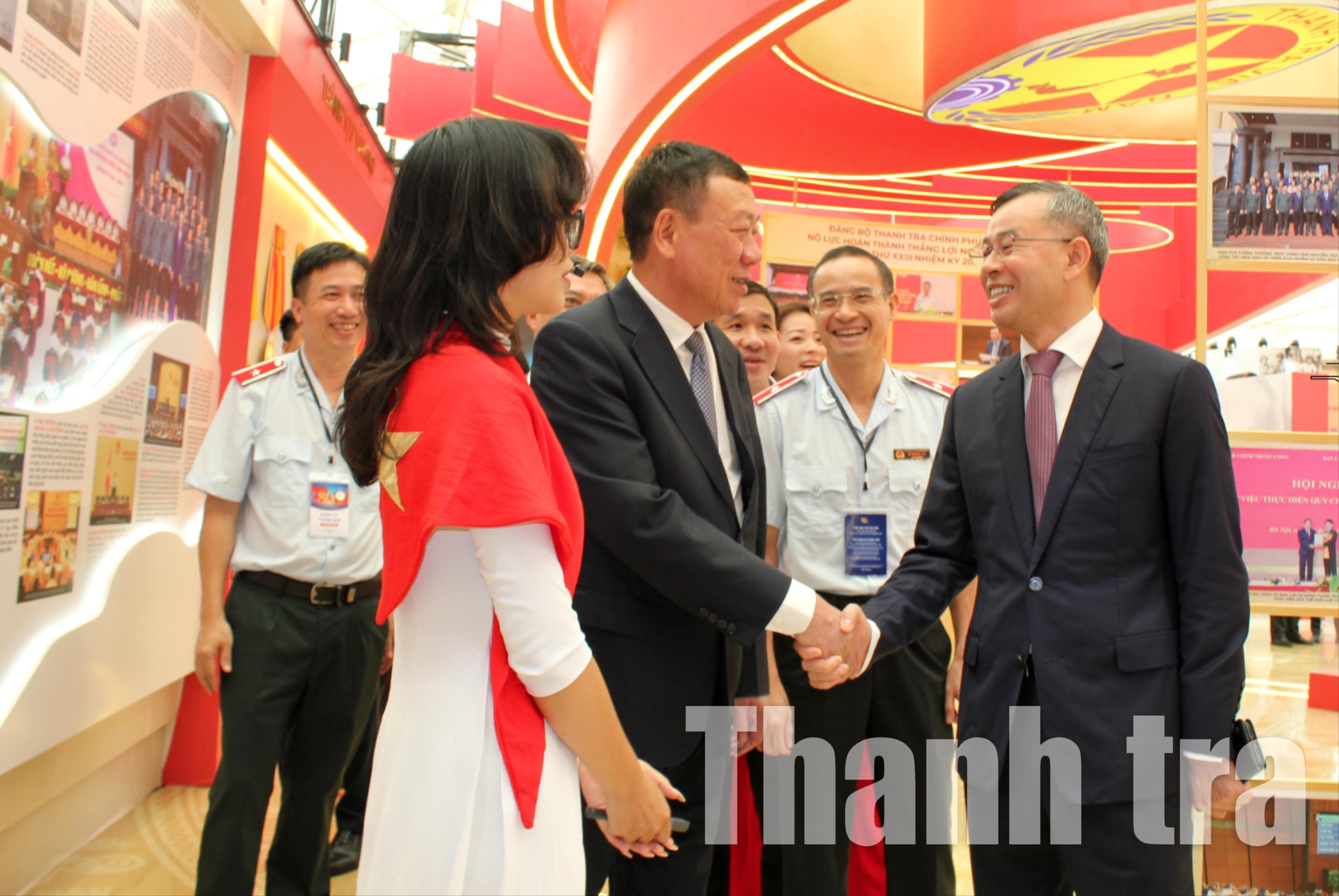 Tổng Thanh tra Chính phủ Đoàn Hồng Phong, Phó Tổng Thanh tra Lê Sỹ Bảy, cùng lãnh đạo các cục, vụ, đơn vị thuộc cơ quan Thanh tra Chính phủ đã thăm gian trưng bày của ngành Thanh tra