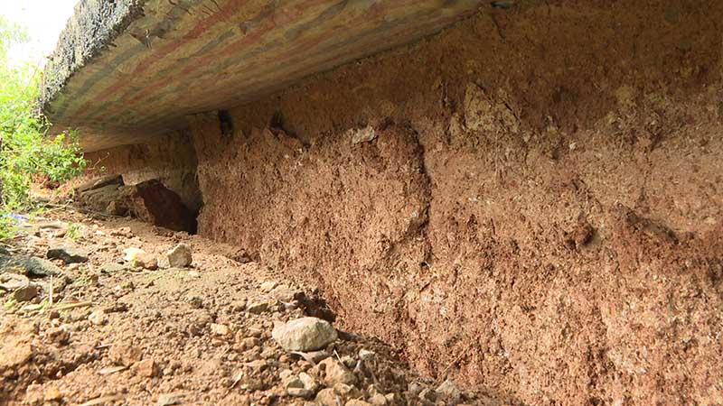 Tình hình sạt lỡ sói sâu vào lòng đường tiềm ẩn tai nạn giao thông.
