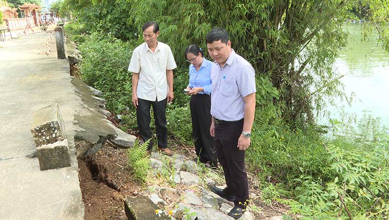 Qua khảo sát, lãnh đạo xã cũng đoàn công tác ghi nhận một số điểm sạt lở diễn biến nghiêm trọng như tại thôn Niêm Phò đã sạt lở lấn sâu dưới lòng đường, đoạn dài hơn 150m, rất nguy hiểm trong giao thông đi lại; tại thôn Phò Nam A sạt lở bờ sông dài hơn 300m ảnh hưởng trực tiếp hơn 12 hộ dân trong thôn.