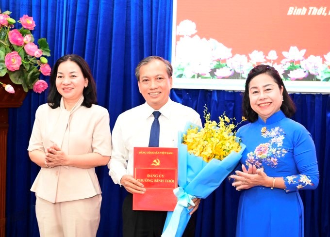 Đồng chí Trương Thị Bích Hạnh và đồng chí Nguyễn Văn Dũng tặng hoa chúc mừng đồng chí Nguyễn Văn Đạt. (Ảnh: SGGP)Tại buổi lễ, đồng chí Trương Thị Bích Hạnh trao quyết định của Ban Thường vụ Thành ủy TPHCM chỉ định đồng chí Nguyễn Văn Đạt, Phó Trưởng Ban Pháp chế HĐND TPHCM, tham gia Ban Chấp hành, Ban Thường vụ Đảng ủy và giữ chức Phó Bí thư Đảng ủy phường Bình Thới nhiệm kỳ 2025-2030.