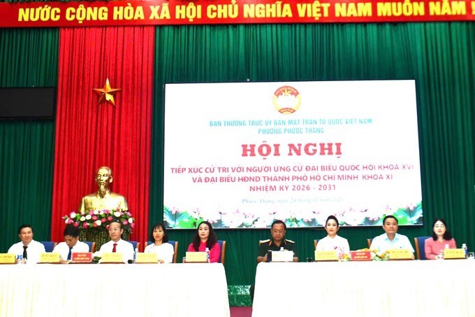 Các ứng cử viên đại biểu Quốc hội và HĐND TPHCM nhiệm kỳ 2026-2031 tham gia vận động bầu cửSáng 24/2, tại hội trường Chi đội Kiểm ngư số 2 (phường Phước Thắng, TPHCM) diễn ra hội nghị vận động bầu cử của các ứng cử viên đại biểu Quốc hội khóa XVI (đơn vị bầu cử số 4) và đại biểu HĐND TPHCM khóa XI (đơn vị bầu cử số 10), nhiệm kỳ 2026-2031.