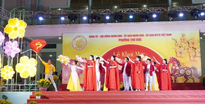 Tiết mục văn nghệ tại chương trình khai mạc hội xuân - chợ hoa tếtTối 11/2, Đảng ủy - HĐND - UBND - Ủy ban MTTQ Việt Nam phường Thủ Đức (TPHCM) khai mạc Hội xuân - Chợ hoa Tết Bính Ngọ năm 2026.