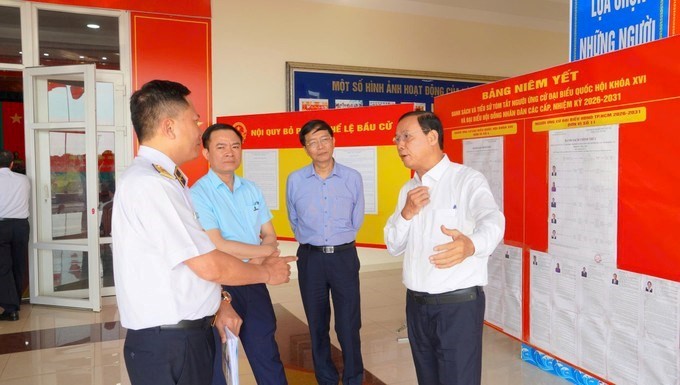 Các cử tri khu vực bỏ phiếu số 2 (phường Phước Thắng) xem danh sách thông tin ứng cử viên đại biểu trước ngày bầu cửTrước ngày 26/2, không khí tại các điểm bỏ phiếu sớm bầu cử đại biểu Quốc hội khóa XVI và đại biểu HĐND TPHCM khóa XI, nhiệm kỳ 2026-2031, ở phường Phước Thắng, Tam Thắng và xã Long Sơn diễn ra khẩn trương, rộn ràng. Mọi công tác chuẩn bị đã hoàn tất, sẵn sàng cho ngày hội lớn của cử tri đang làm nhiệm vụ dài ngày trên biển, giàn khoan, tàu trực và nhà giàn DK1.