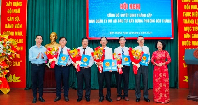 Tại hội nghị, UBND phường cũng công bố các quyết định tiếp nhận, điều động và bổ nhiệm nhân sự. Theo đó, ông Phạm Quách Trường Giang được bổ nhiệm giữ chức Giám đốc Ban Quản lý dự án đầu tư xây dựng phường Bến Thành. Các Phó Giám đốc gồm: ông Võ Văn Hai, ông Nguyễn Hồng Quang, ông Lê Văn Nhơn và ông Lương Quý Hòa. Đồng thời, 21 viên chức được tiếp nhận về công tác tại đơn vị từ ngày 9/2/2026 và bố trí thêm 3 lao động hợp đồng.