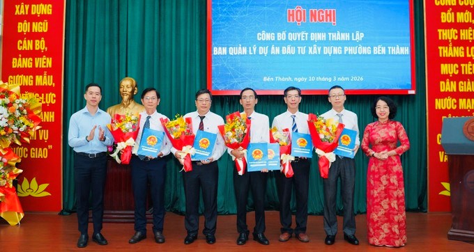 Lãnh đạo phường Bến Thành trao các quyết định về công tác cán bộ Ban Quản lý dự án đầu tư xây dựng phường Bến ThànhNgày 10/3, UBND phường Bến Thành (TPHCM) tổ chức hội nghị công bố quyết định thành lập Ban Quản lý dự án đầu tư xây dựng phường Bến Thành và trao các quyết định về công tác cán bộ.