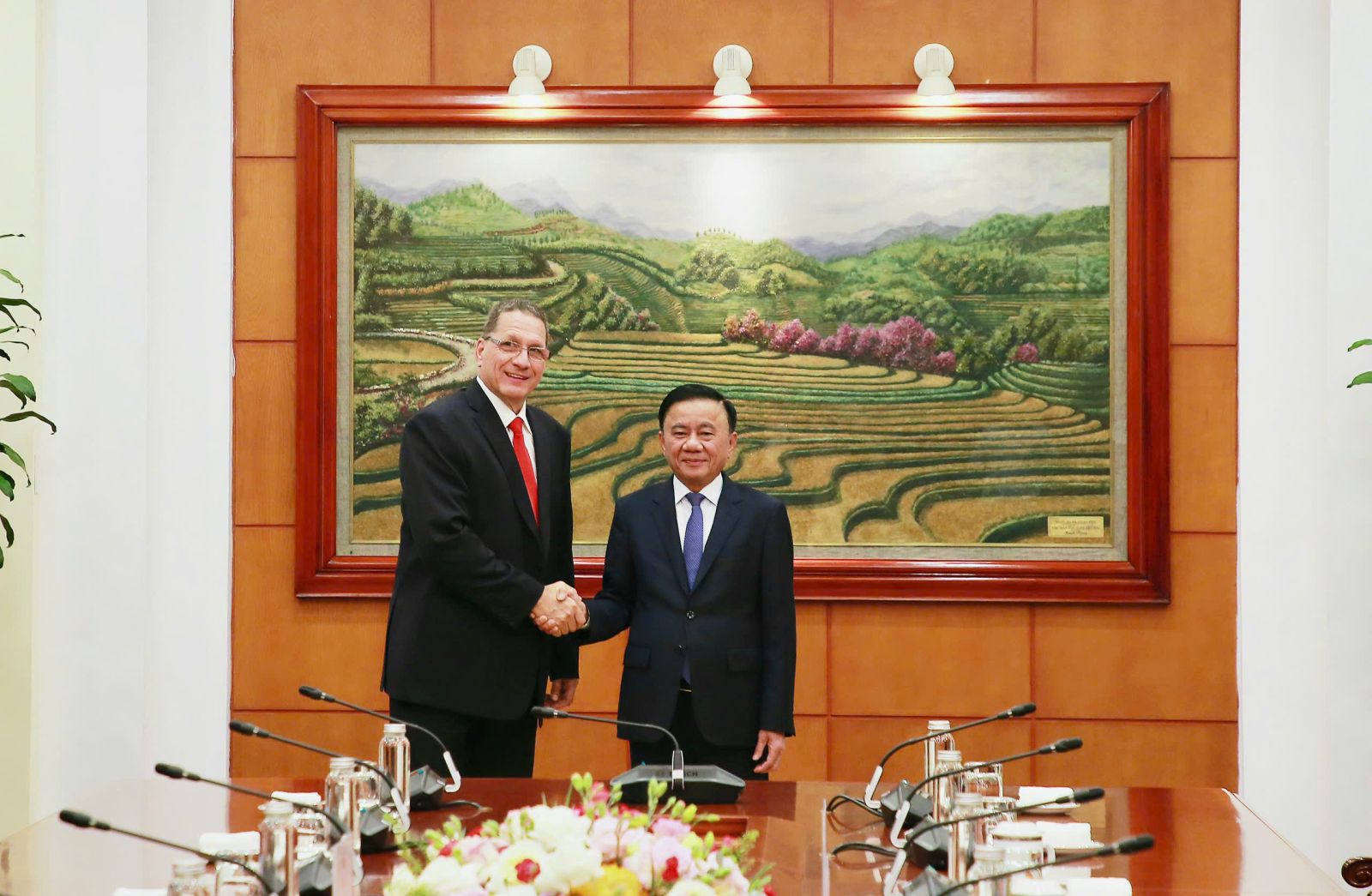 Thường trực Ban Bí thư Trần Cẩm Tú tiếp Phó Chủ tịch Đảng Xã hội Chủ nghĩa thống nhất Venezuela Jesús Faria.