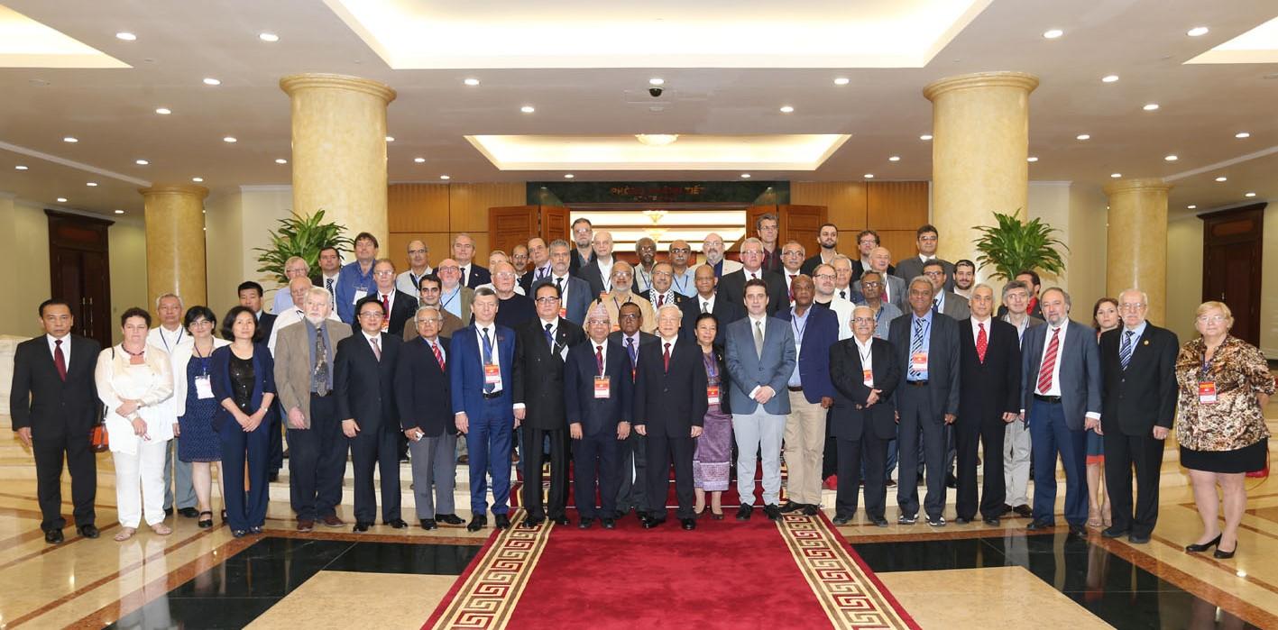 Tổng Bí thư Nguyễn Phú Trọng cùng các Trưởng đoàn đại biểu dự Cuộc gặp quốc tế các đảng cộng sản và công nhân lần thứ 18 chụp ảnh chung (Ảnh: TTXVN)