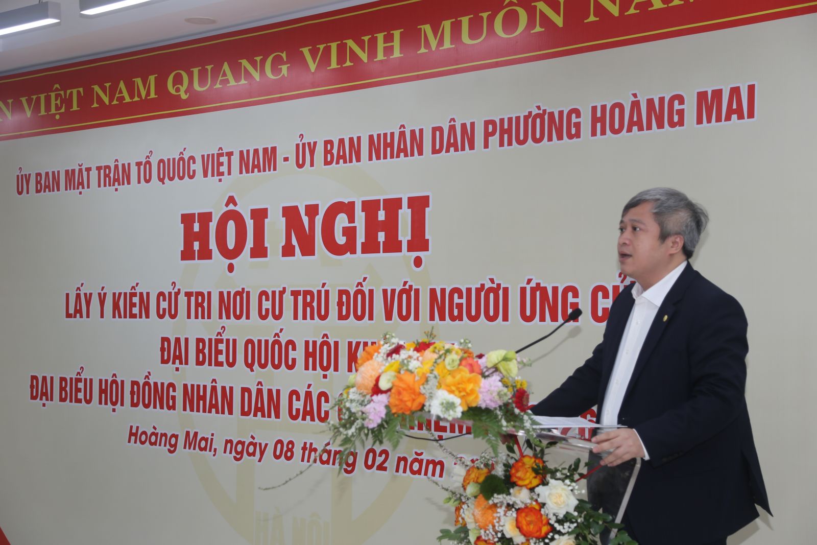 Chiều 8/2, tại Hà Nội, Ủy ban MTTQ Việt Nam phường Hoàng Mai phối hợp UBND phường tổ chức Hội nghị Lấy ý kiến nhận xét và tín nhiệm của cử tri nơi cư trú đối với người ứng cử đại biểu Quốc hội khóa XVI và đại biểu HĐND các cấp nhiệm kỳ 2026-2031 tại Tổ dân phố số 13 Khu đô thị Gamuda.
