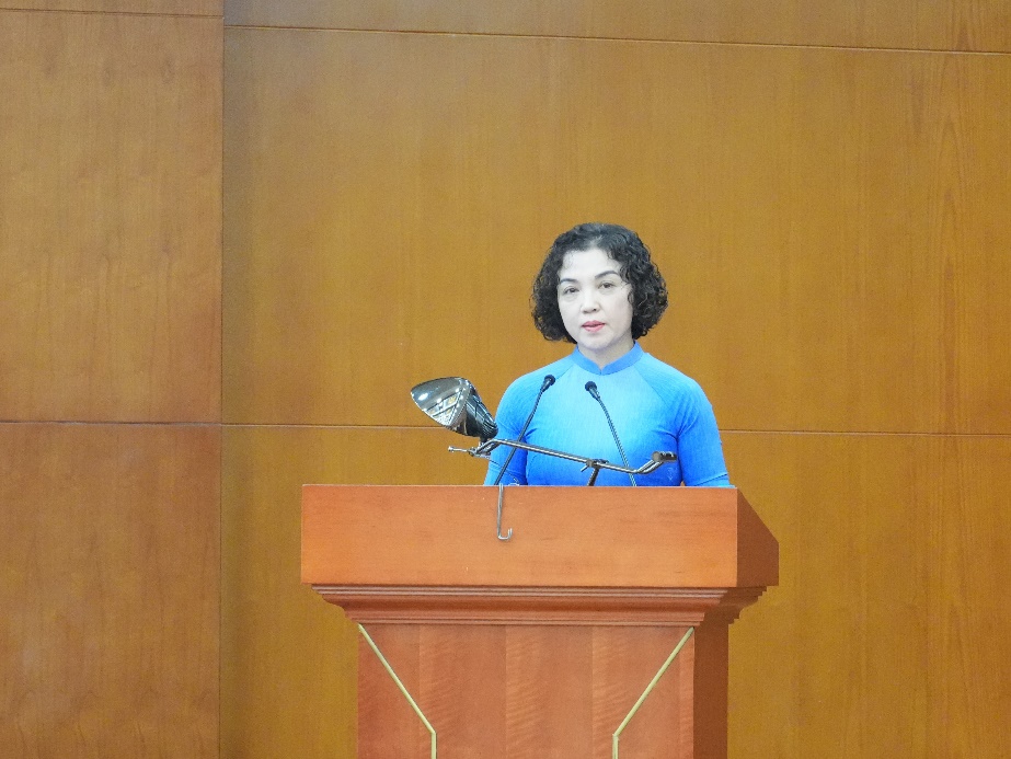 Đồng chí Trần Thị Hiền, Phó Chủ nhiệm Ủy ban Kiểm tra Trung ương, Bí thư Đảng ủy, Phó Thủ trưởng Cơ quan phát biểu ý kiến tại Hội nghị.