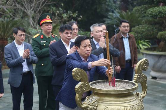 Đoàn dâng hương tại Nhà bia di tích thành lập Ban Kiểm tra Trung ương trên đồi Pụ Miếu