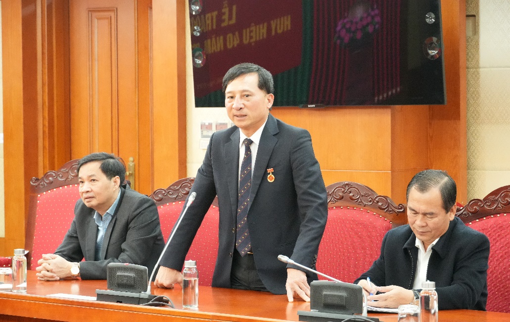 Đồng chí Hoàng Trọng Hưng, nguyên Phó Chủ nhiệm Ủy ban Kiểm tra Trung ương, nguyên Phó Thủ trưởng Cơ quan phát biểu tại Lễ trao tặng Huy hiệu Đảng.