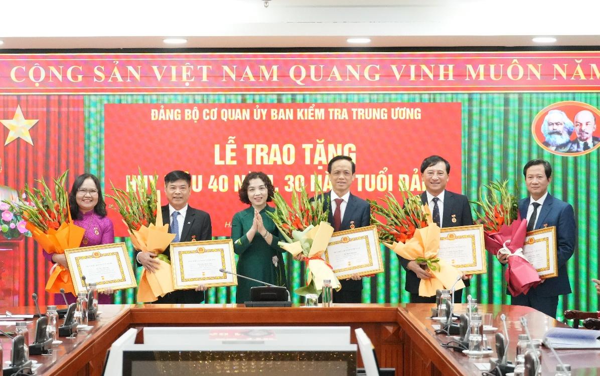 Trong không khí phấn khởi hướng tới mùa xuân mới, chào mừng thành công Đại hội Đại biểu toàn quốc lần thứ XIV của Đảng và kỷ niệm 96 năm Ngày thành lập Đảng Cộng sản Việt Nam; chiều 3/2/2026, Đảng ủy Cơ quan Ủy ban Kiểm tra Trung ương tổ chức Lễ trao Huy hiệu 40 năm tuổi Đảng, 30 năm tuổi Đảng tặng 5 đồng chí đảng viên.