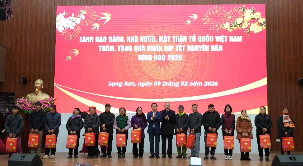 Nhân dịp Tết Nguyên đán Bính Ngọ 2026, toàn tỉnh Lạng Sơn đã trao hơn 15.000 suất quà cho người có công, thân nhân người có công với tổng kinh phí gần 7,5 tỷ đồng. Cùng với đó, tỉnh tập trung nguồn lực chăm lo cho các đối tượng yếu thế, cụ thể, đã hỗ trợ hơn 2.600 suất quà cho hộ nghèo, đối tượng bảo trợ xã hội với kinh phí hơn 1,56 tỷ đồng. Đặc biệt, thông qua Ủy ban Mặt trận Tổ quốc, Hội Chữ thập đỏ, Liên đoàn Lao động tỉnh và các tổ chức chính trị xã hội, toàn tỉnh đã huy động trao tặng hơn 26.000 suất quà tết cho hộ nghèo, cận nghèo, người lao động có hoàn cảnh khó khăn và trẻ em mồ côi, người khuyết tật trên địa bàn tỉnh.